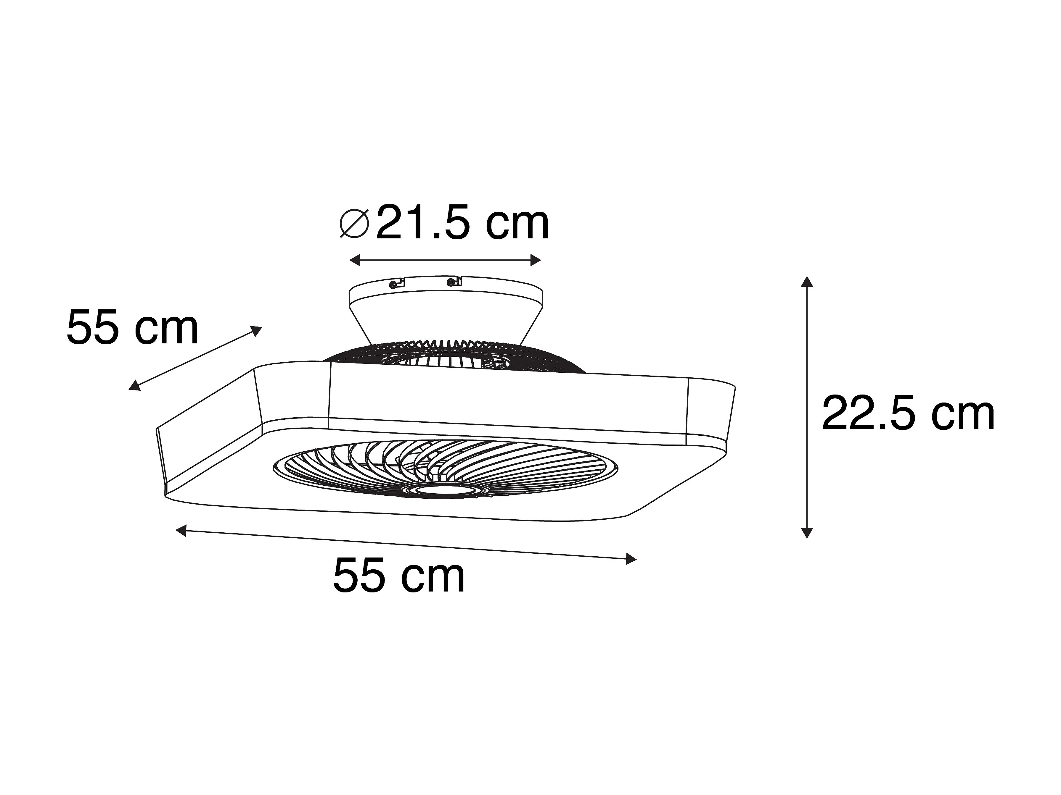 Ventilateur de plafond carré noir avec LED dimmable - Climo