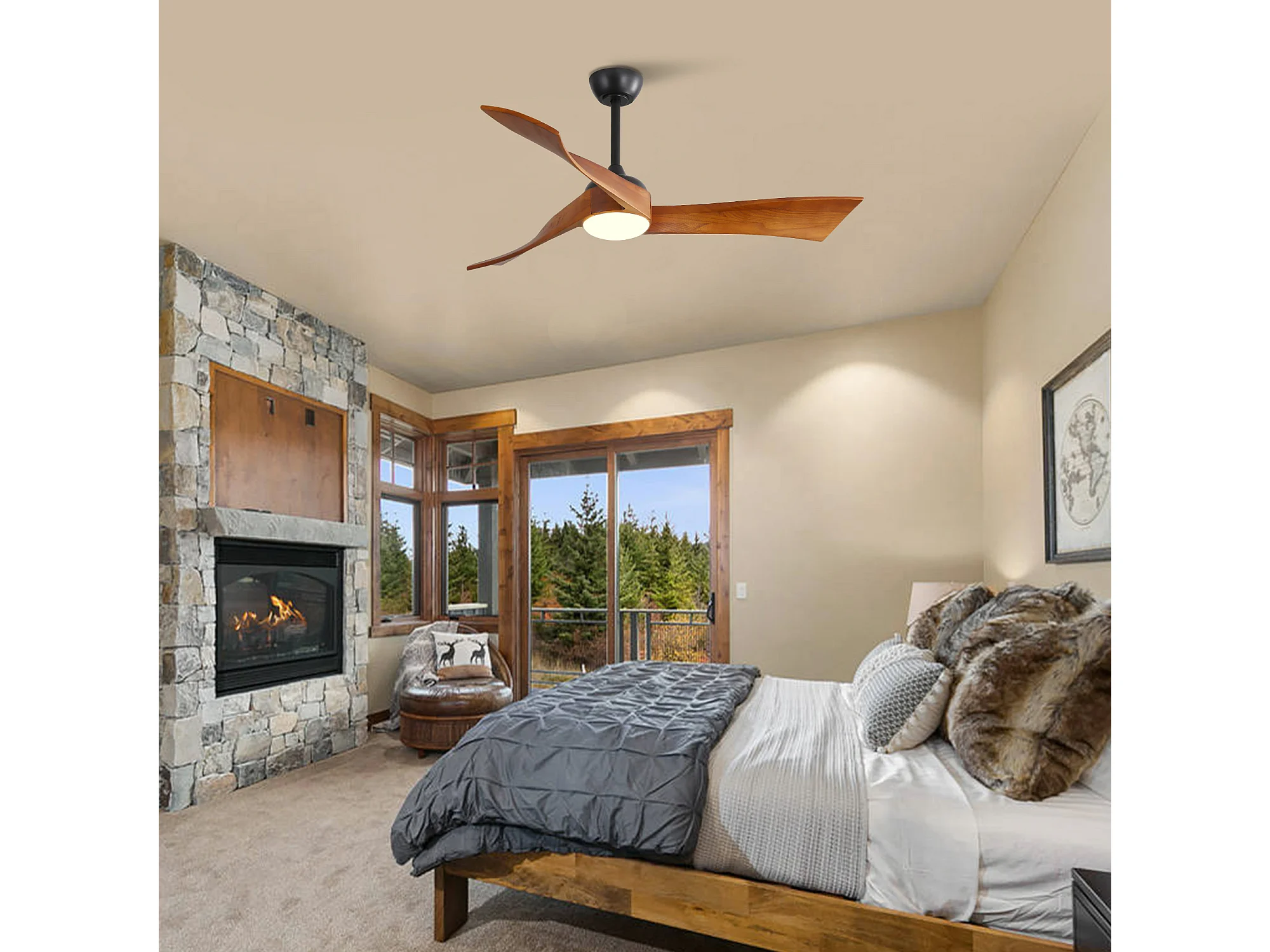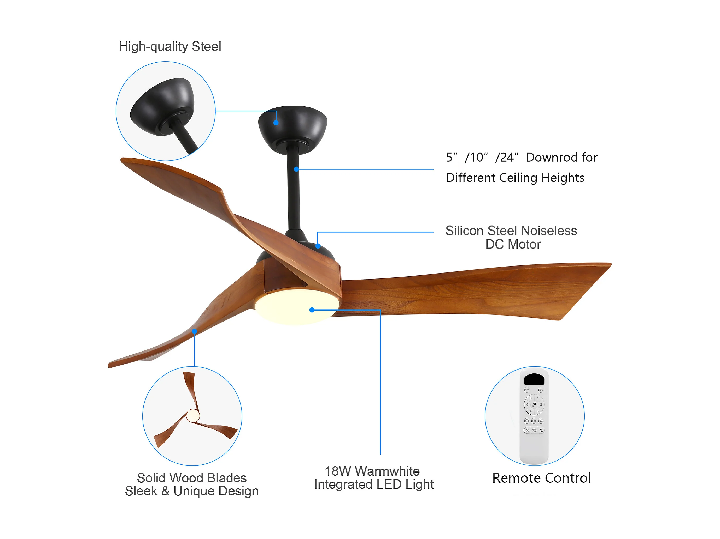 Ventilateur de Plafond Minimaliste en Bois Massif 52 Pouces, Moteur Réversible CC, Design Moderne – Pour Salon, Chambre, Terrasse