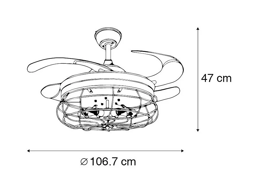 Ventilateur de plafond noir avec télécommande 5 lumières - Gaiola