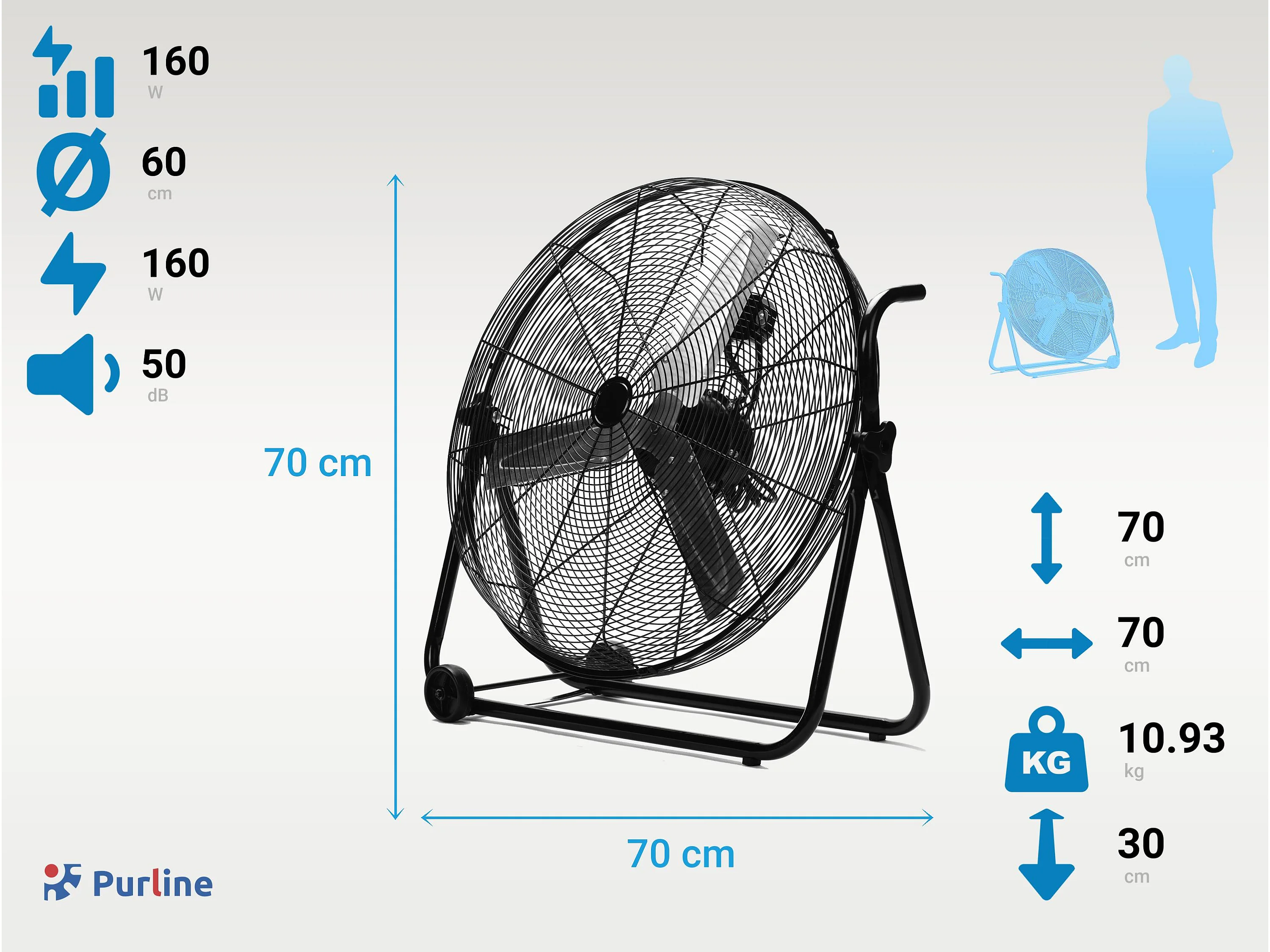 Ventilateur industriel 160W avec 3 vitesses et roues