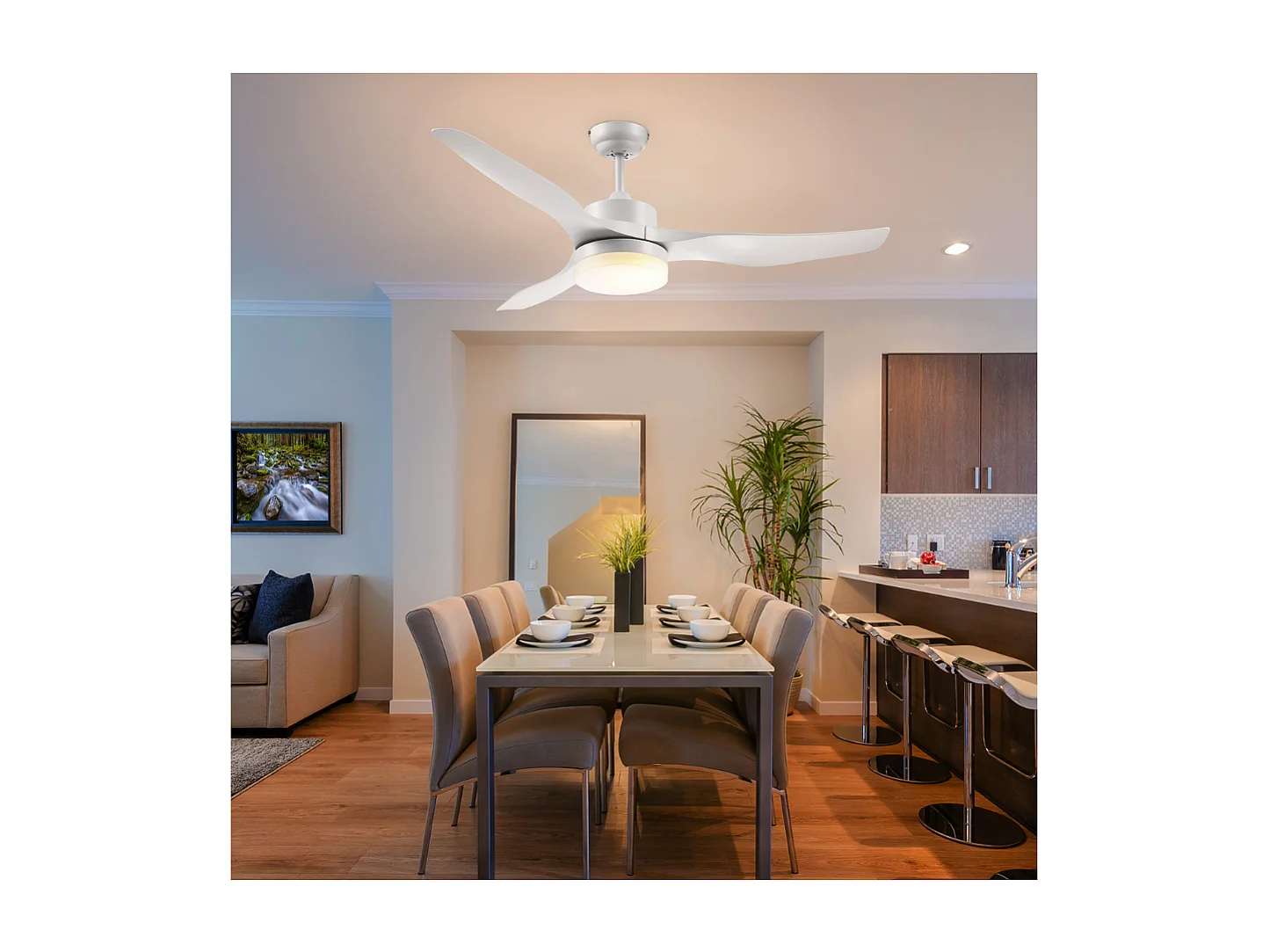 Ventilateur plafond avec lumière et télécommande 20,5 W 6 vitesses 3 couleurs d'éclairage et minuterie, 132cm blanc