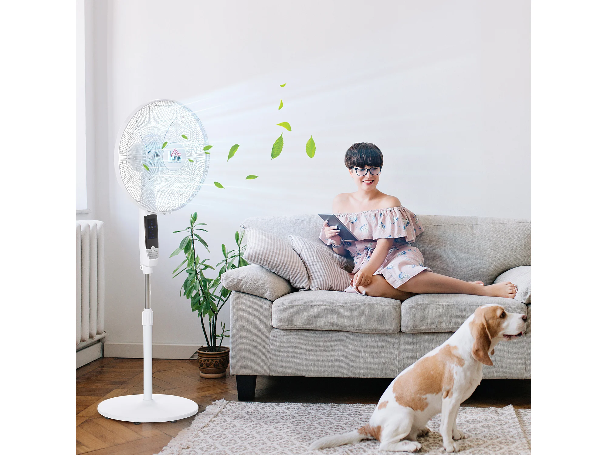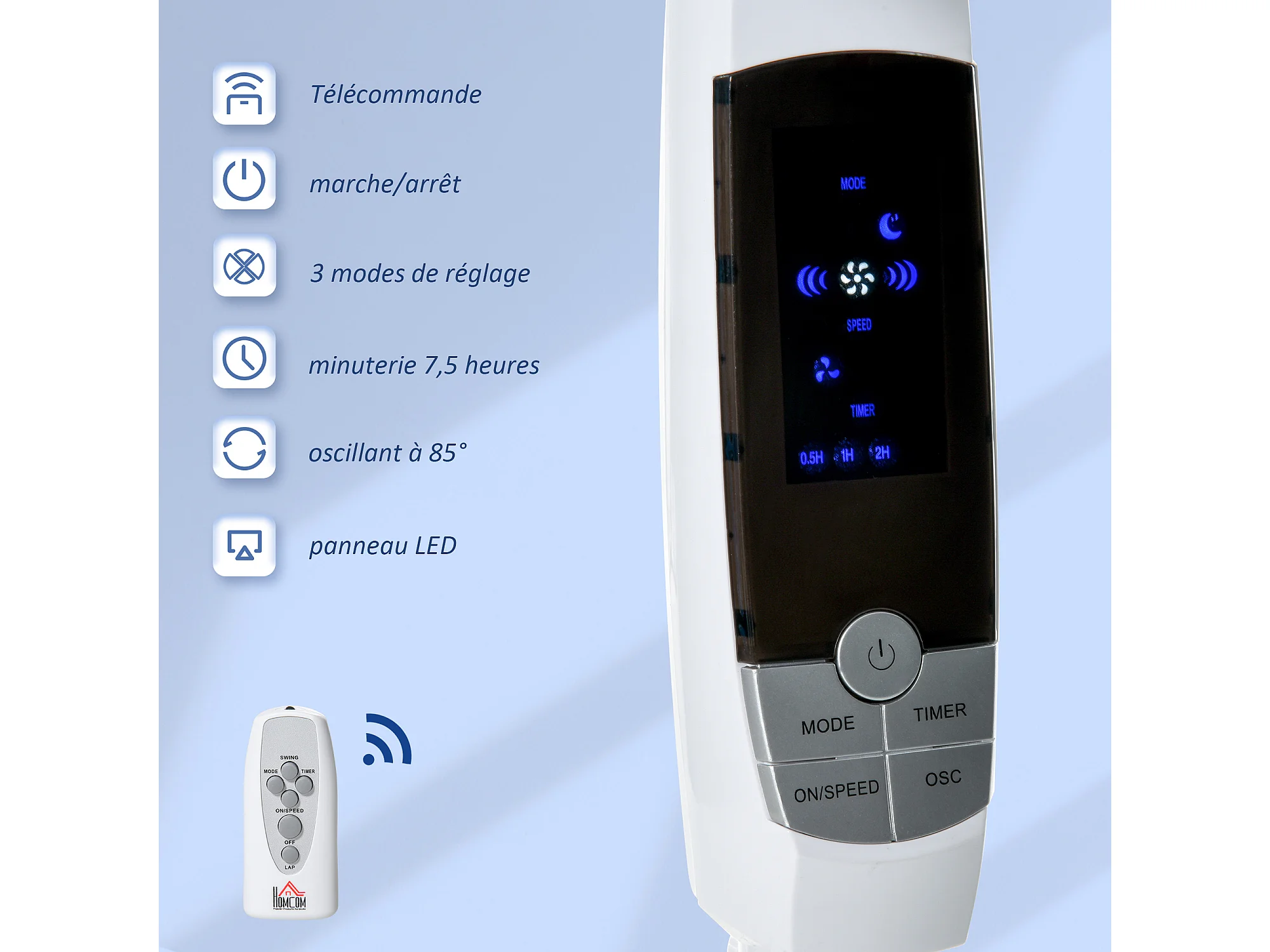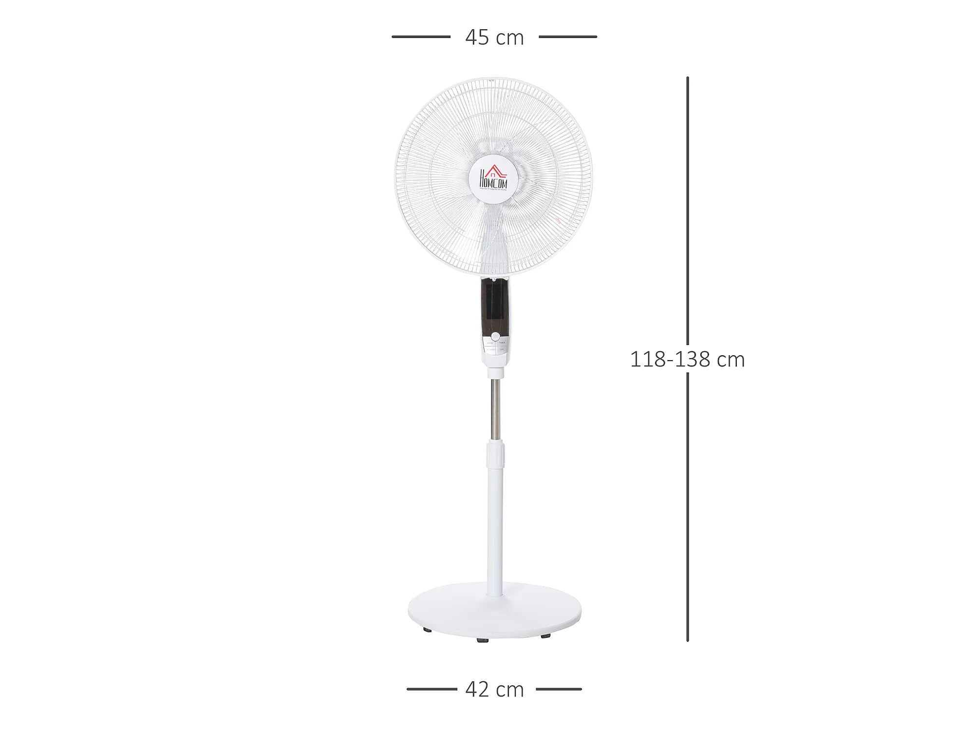 Ventilateur sur pied Ø 45 cm hauteur réglable oscillant silencieux 50 W avec télécommande timer 3 modes 3 vitesses blanc