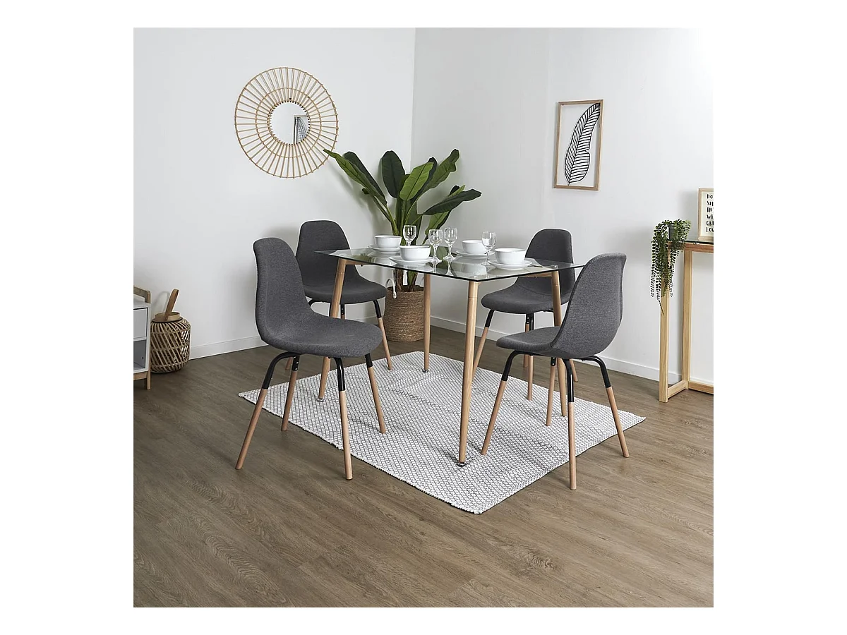 VERANA - Pack Table en Verre + 4 Chaises Gris Chiné Foncé