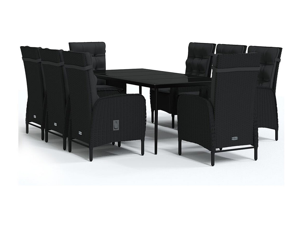 Vernon Ensemble à manger de jardin avec coussins 9 pcs noir
