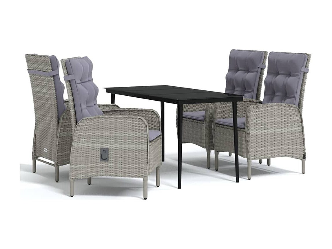 Vernon Ensemble à manger de jardin et coussins 5pcs Gris/noir