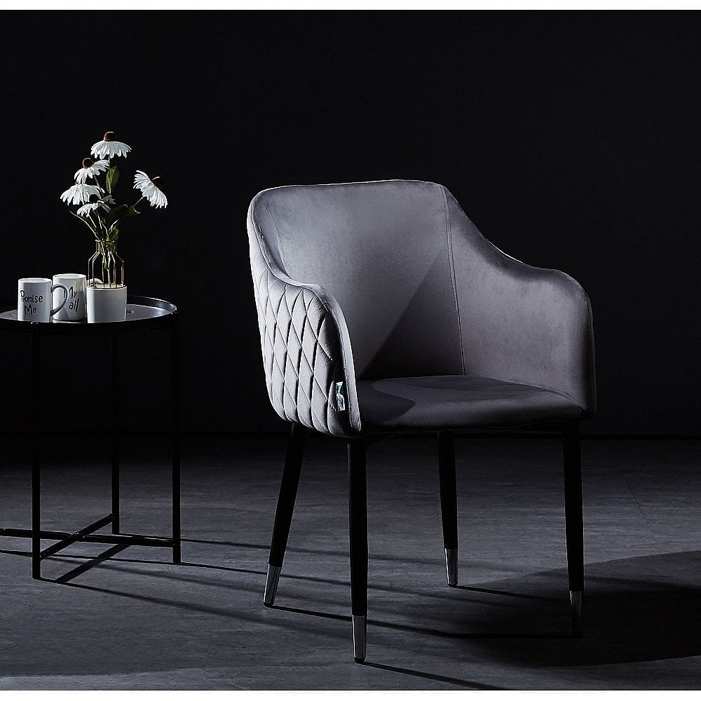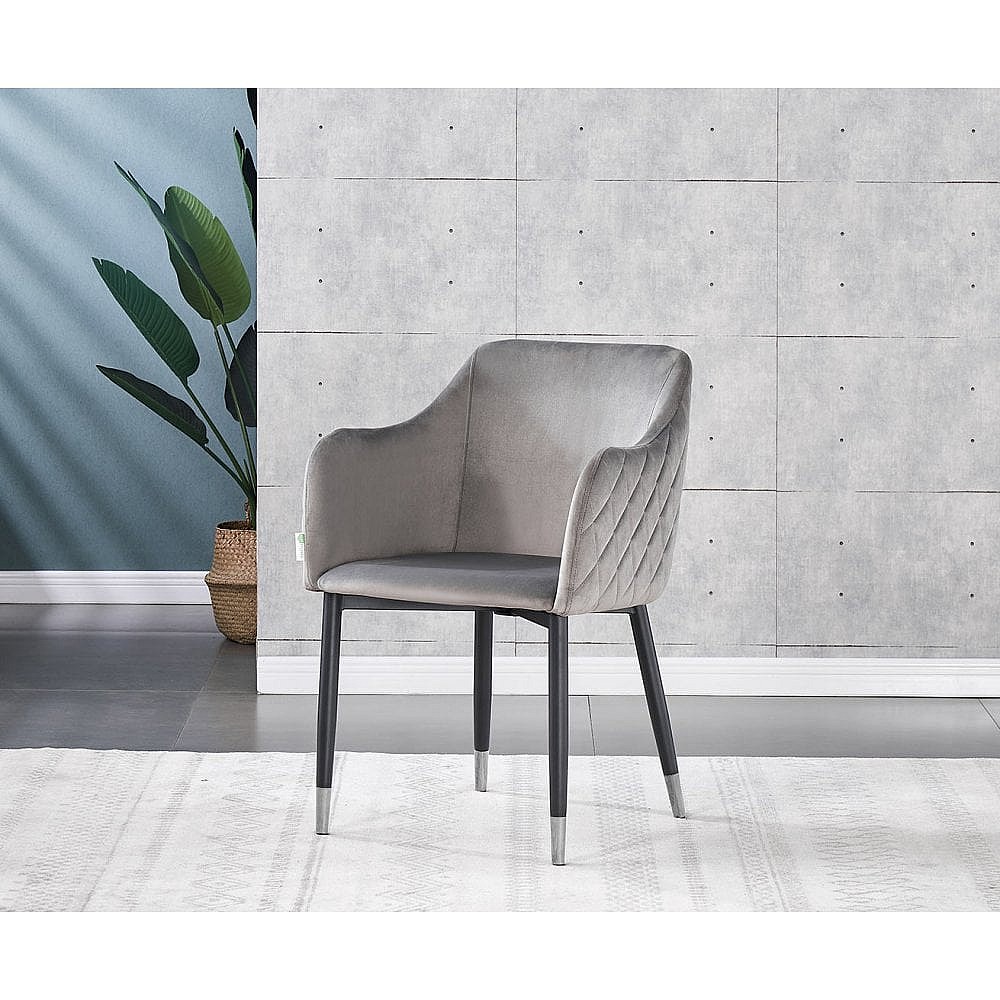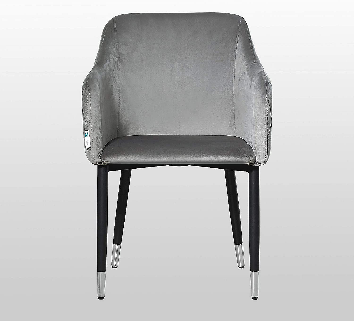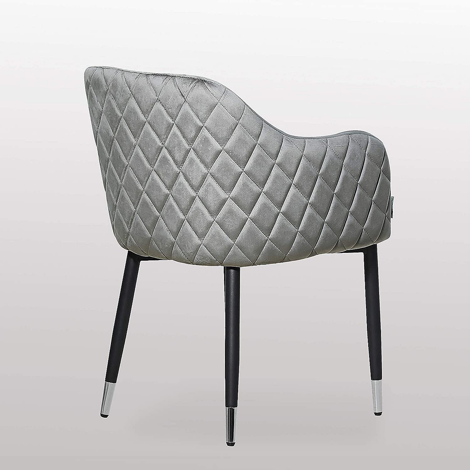 VITTORIO - Fauteuil Chaise de Salle à Manger en Velours - Pieds Noirs et Dorés en Acier Inoxydable - Gris