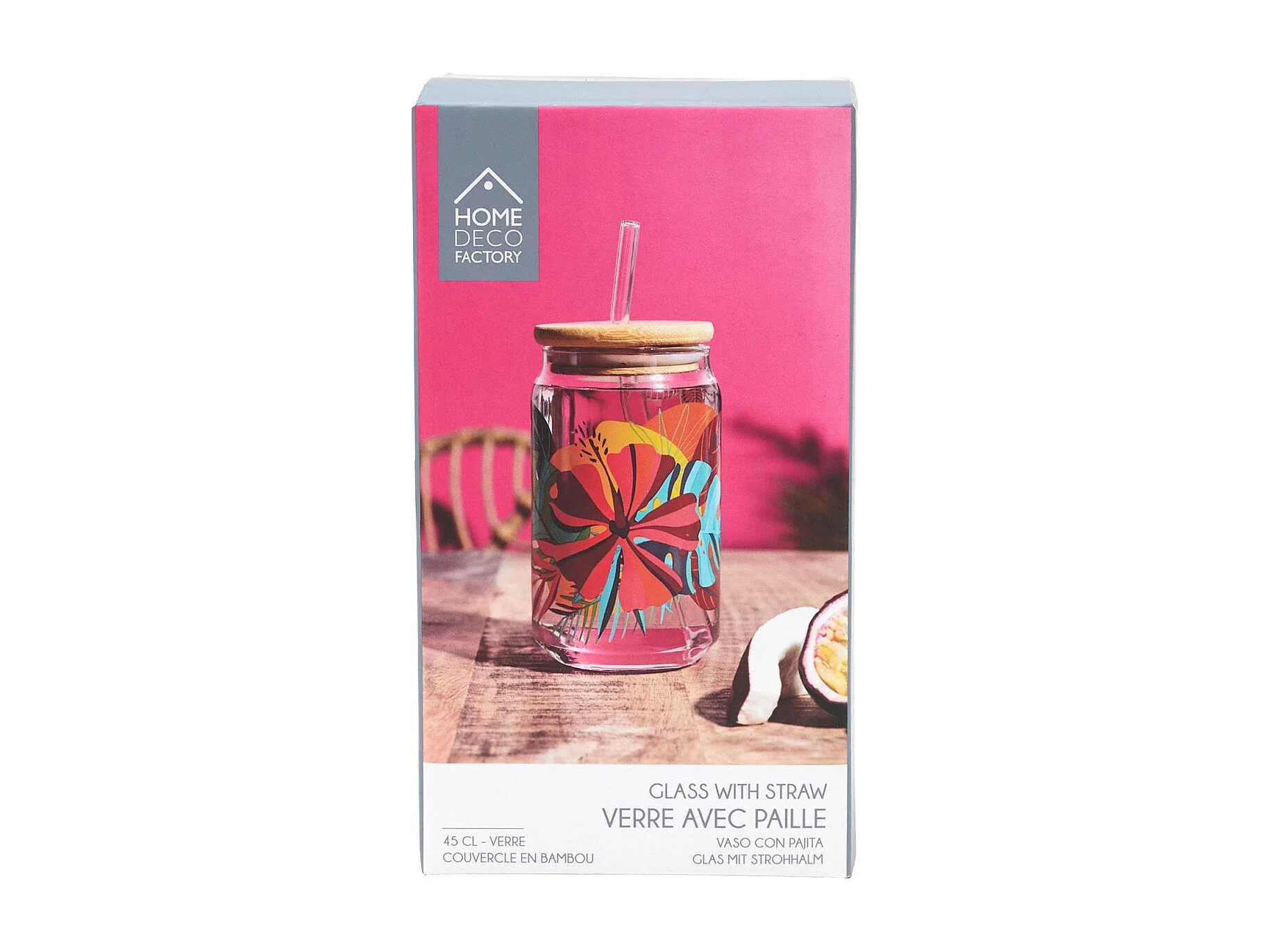 Verre Canette Avec Paille "Paradis Exotique" 45cl Multicolore