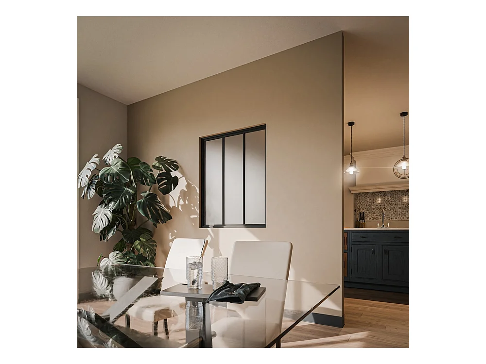 Verrière 3 Carreaux - Déjà Montée - Noir Mat - Verre Dépoli