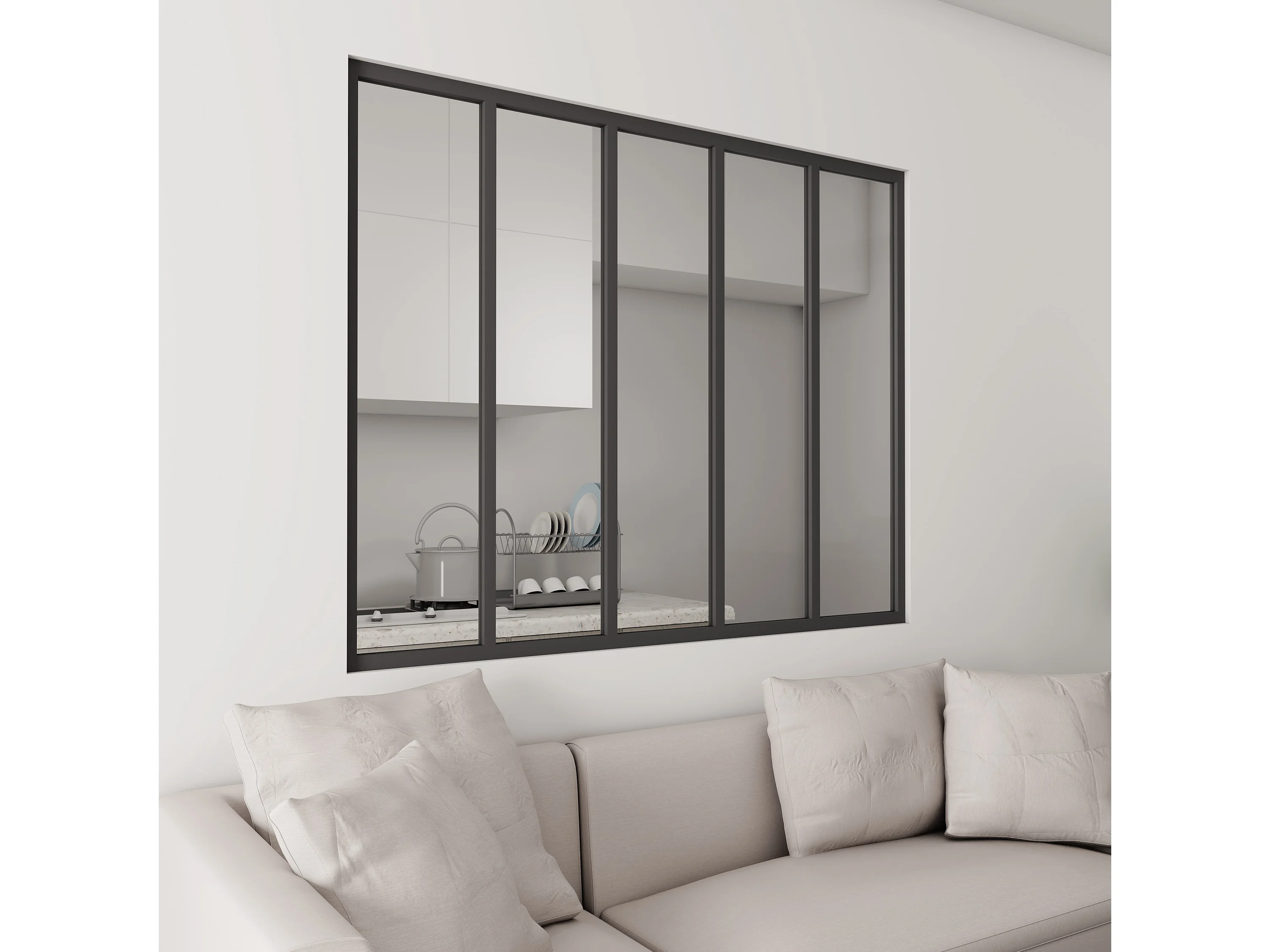 Verrière atelier “Clarté Maximale” - 5 Panneaux en verre trempé 4mm et structure aluminium noir, 153x108 cm