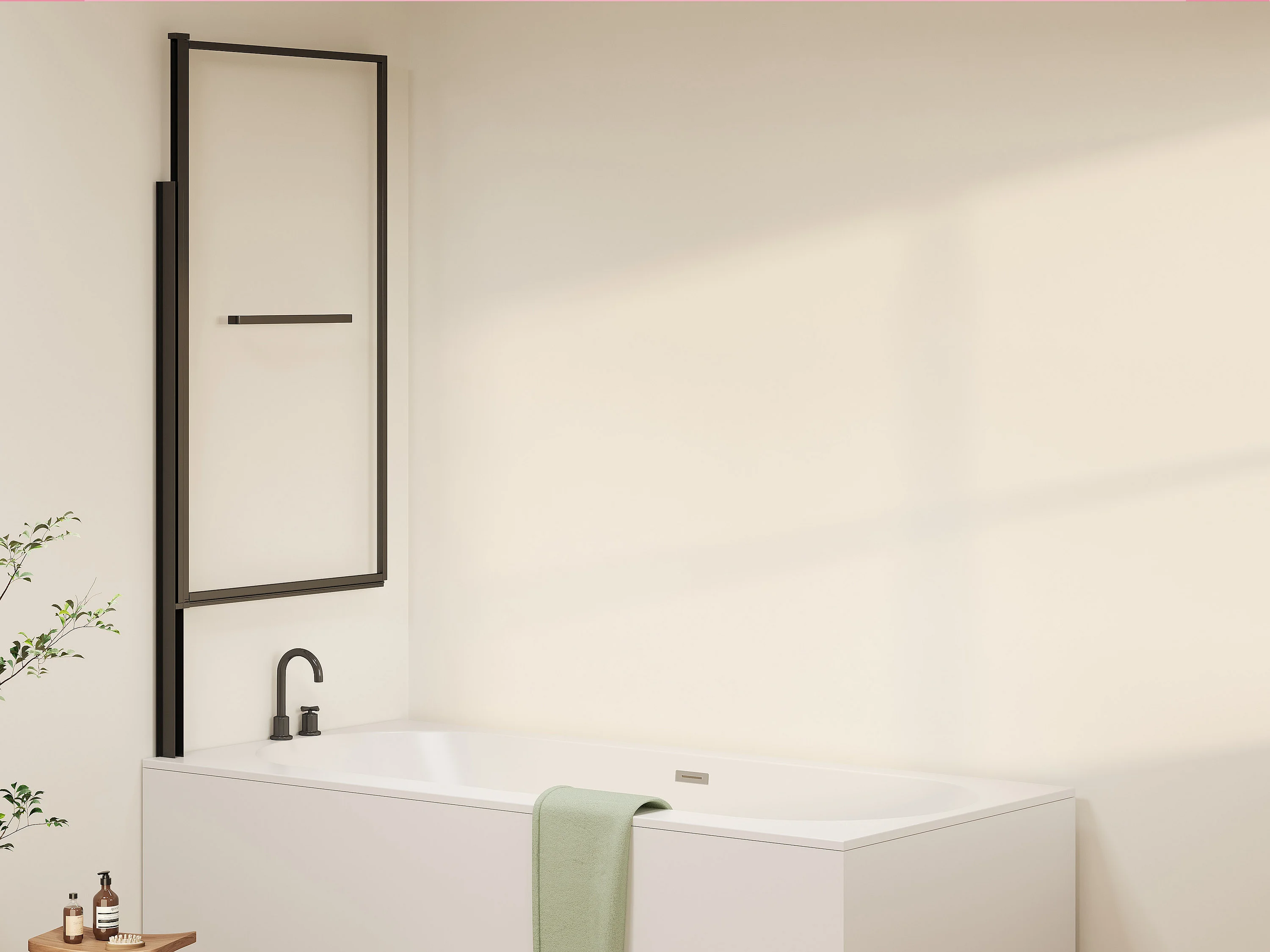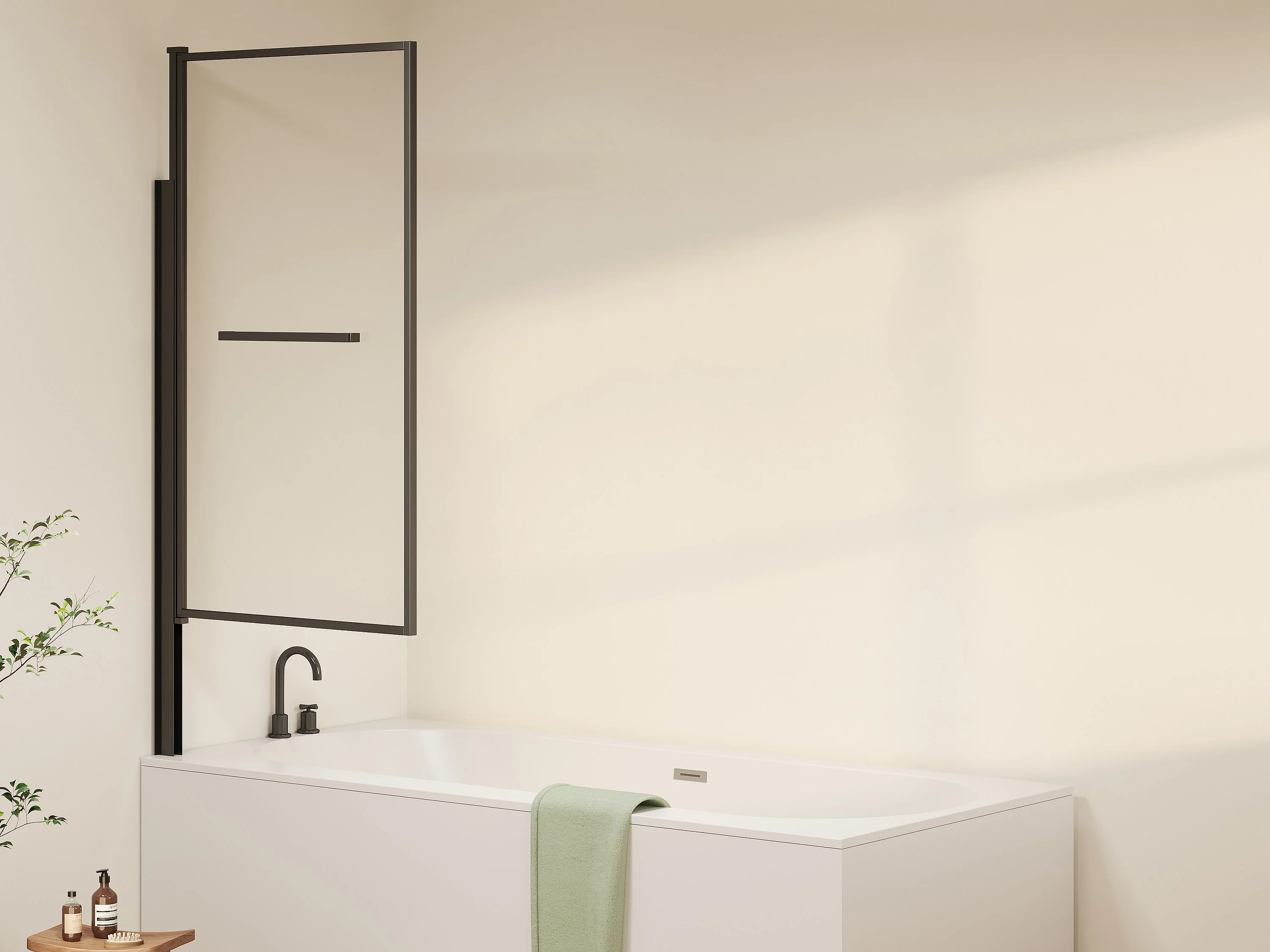 Pare baignoire pivotant et relevable avec porte serviette - Noir mat - 80 x 140 cm - VESLIRA