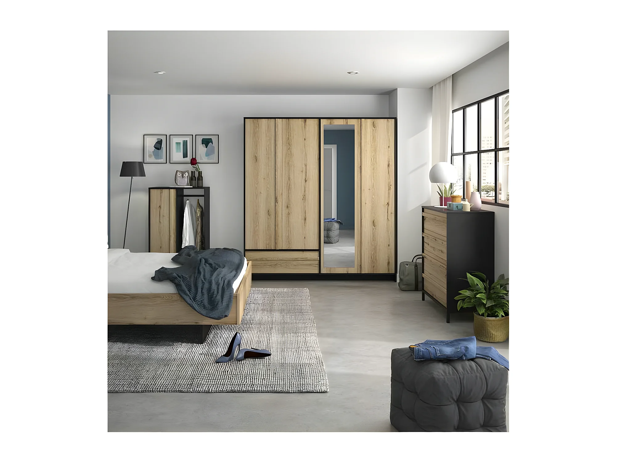 Vestiaire 1 porte 1 penderie Chêne Noir - FIP