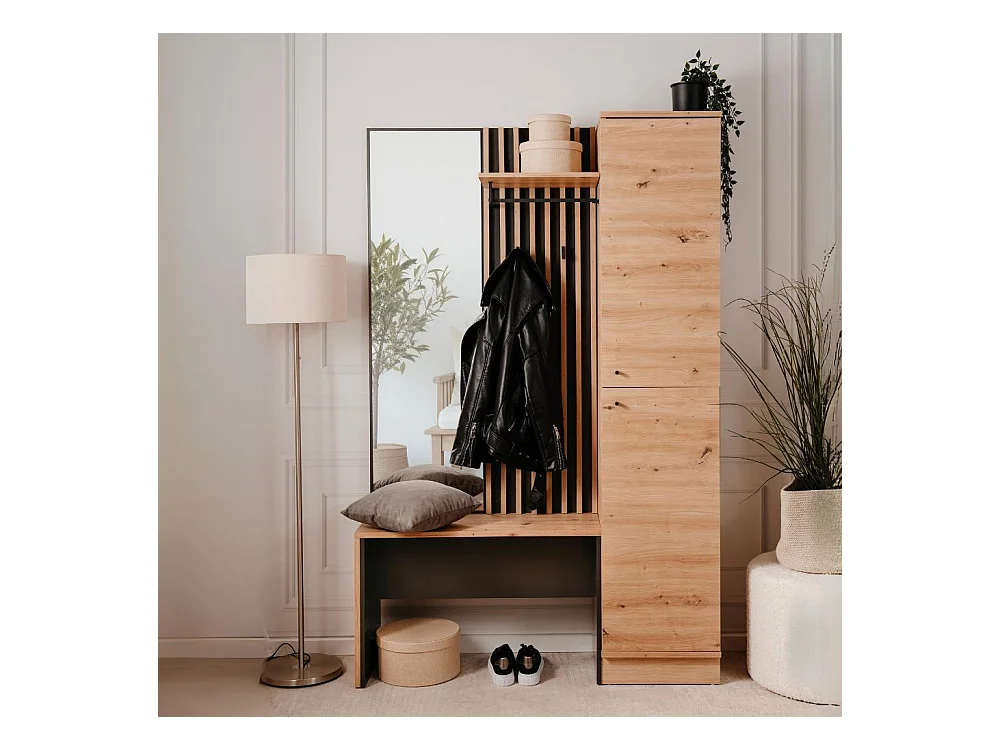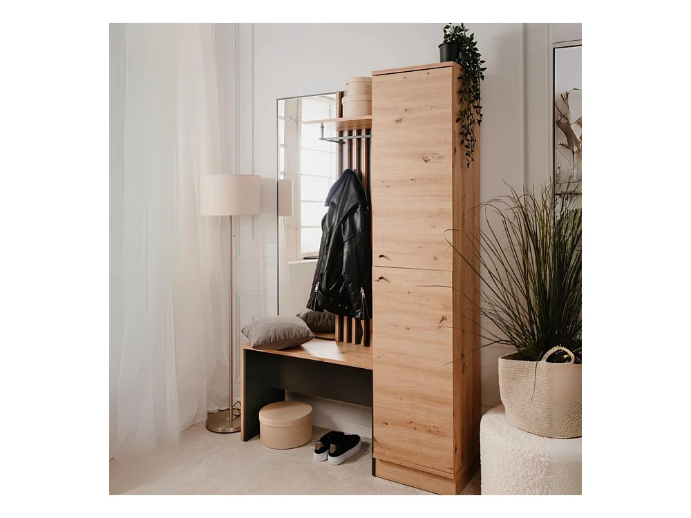 Vestiaire 2 portes avec miroir effet chêne et gris anthracite 122 cm - Flavia