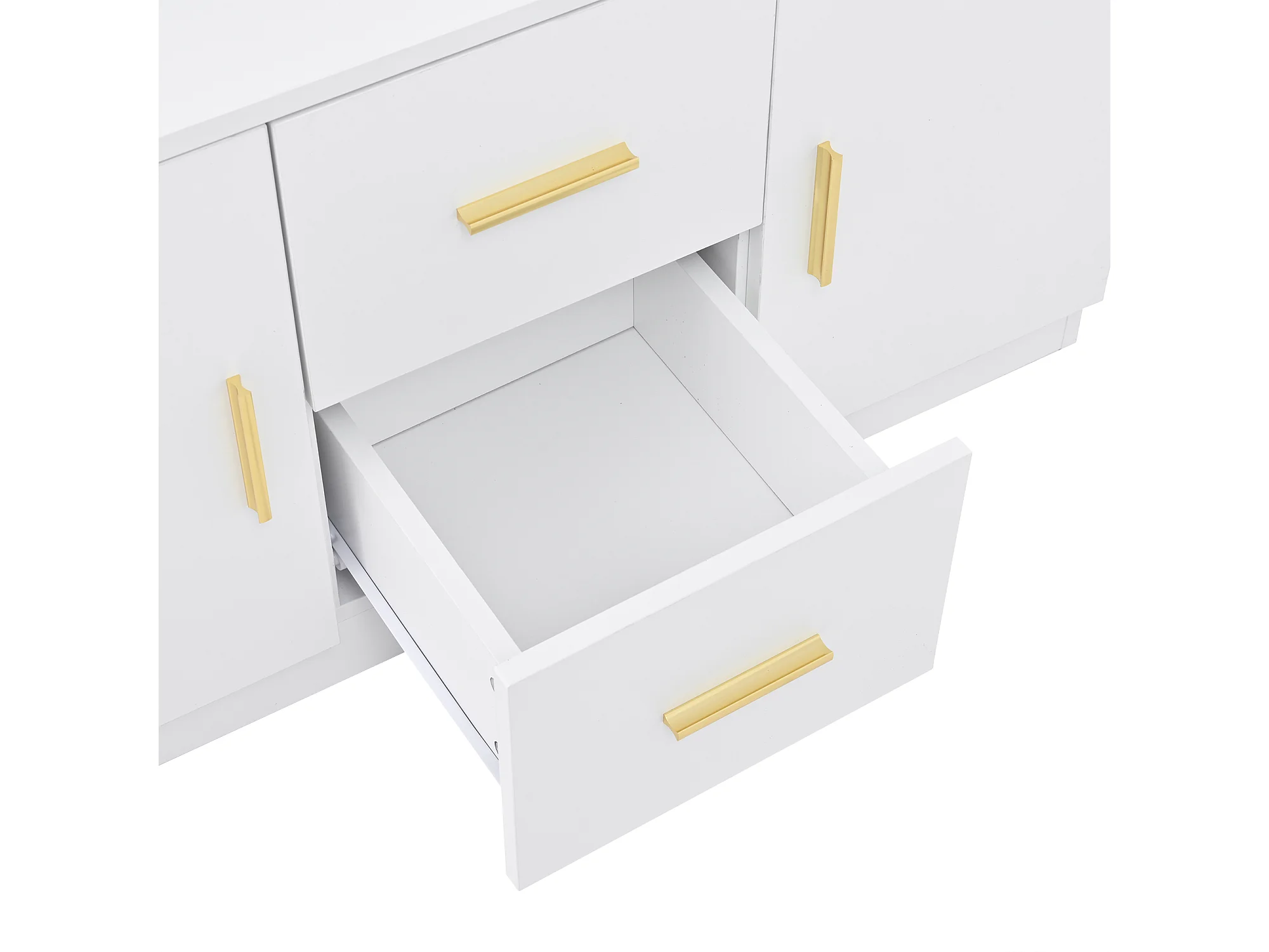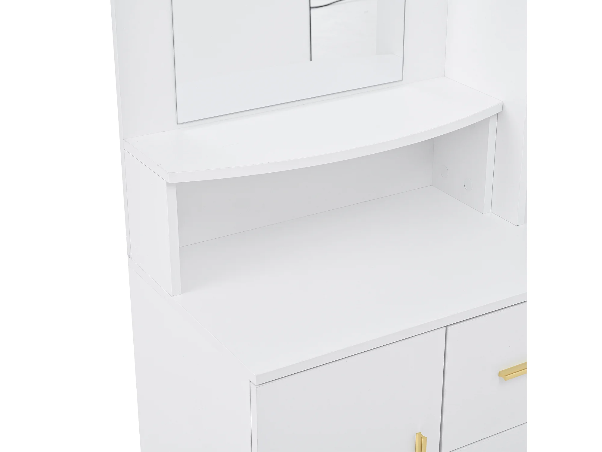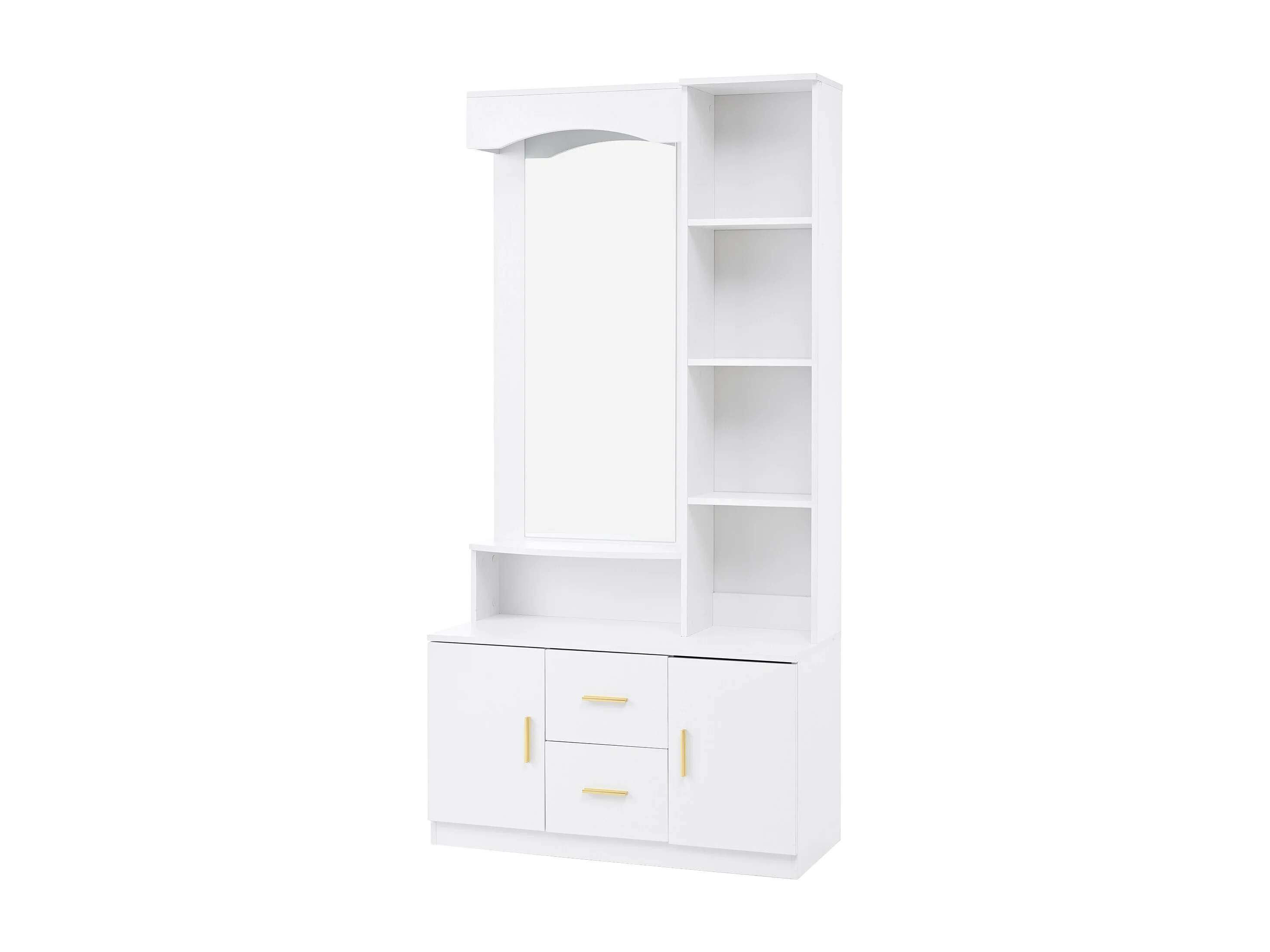 Meuble d'entrée 90x40x180 cm, miroir, 2 portes, 2 tiroirs, étagères, MDF, blanc