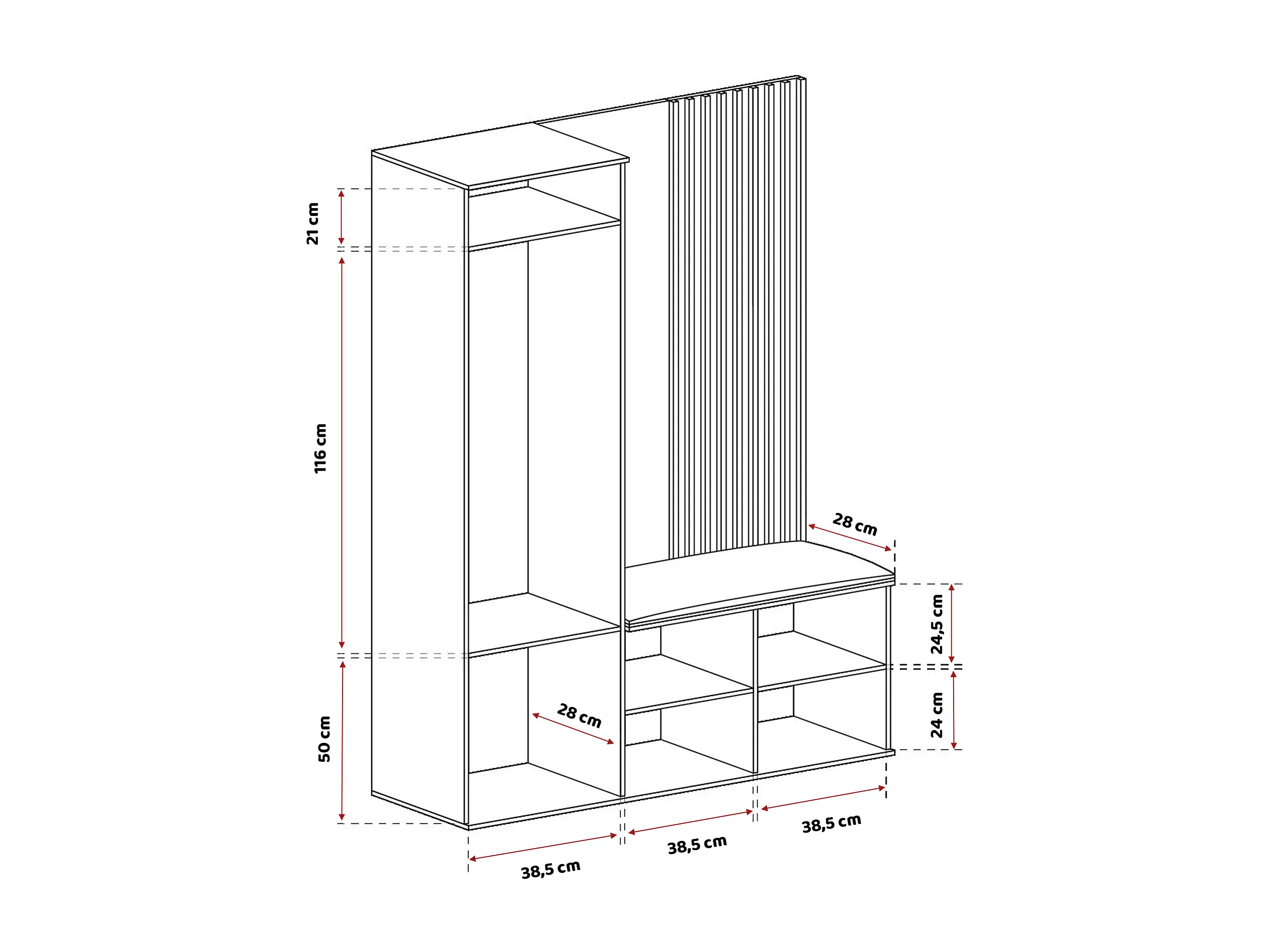 Vestiaire avec 1 porte, 2 tiroirs et 1 miroir, chêne artisanal