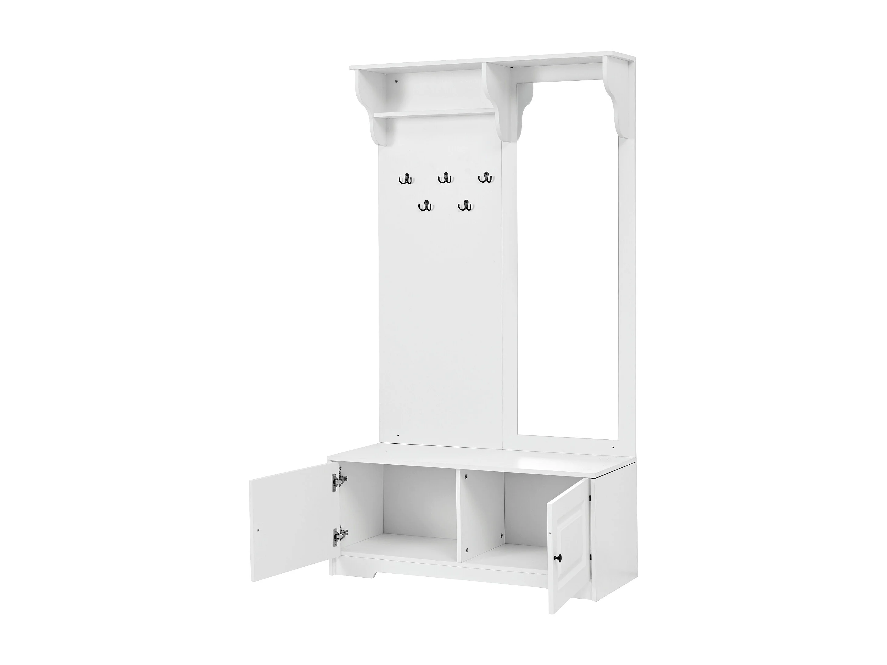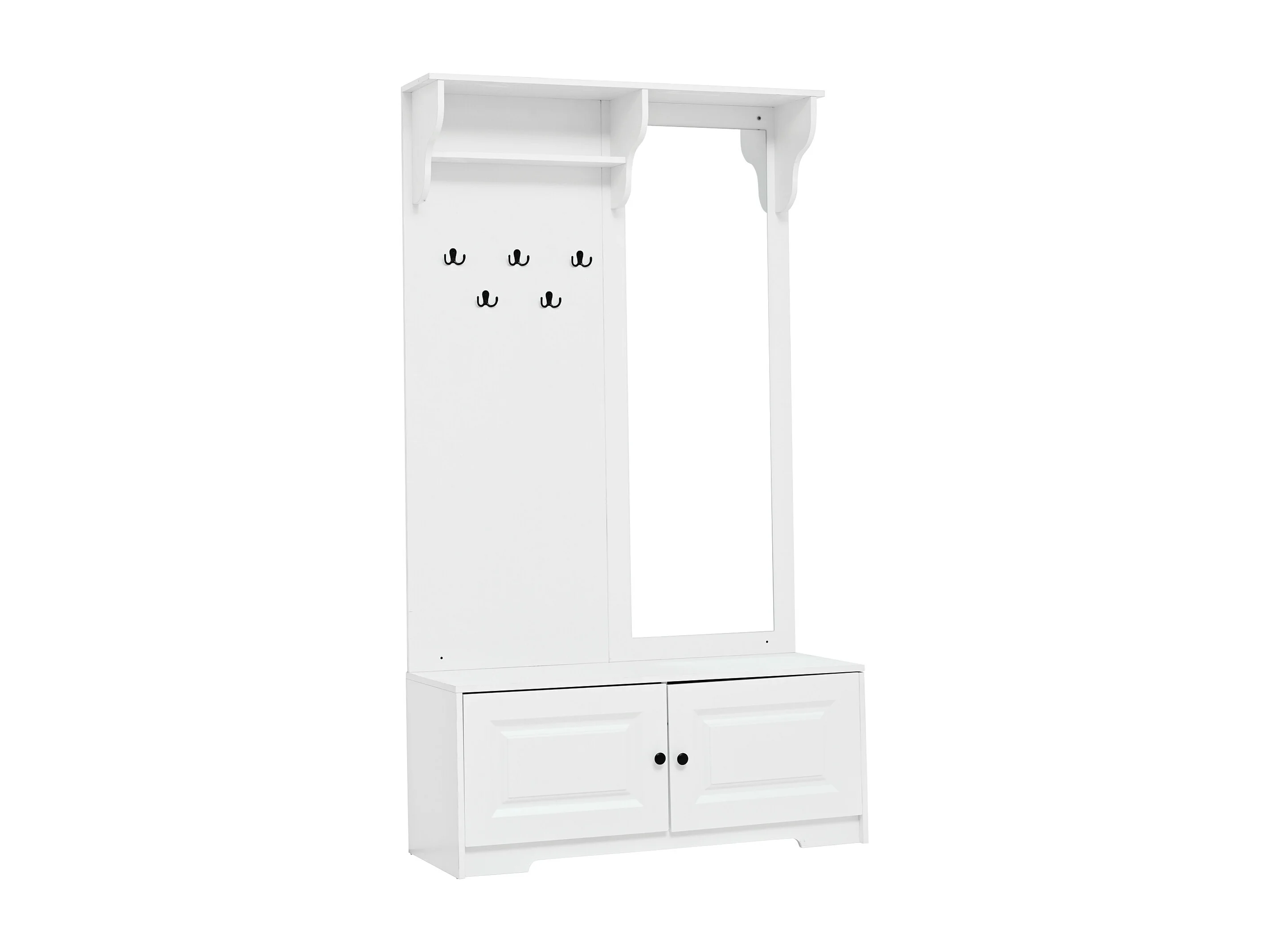 Vestiaire avec 2 portes, miroir et 5 crochets - Blanc -100x40x180cm