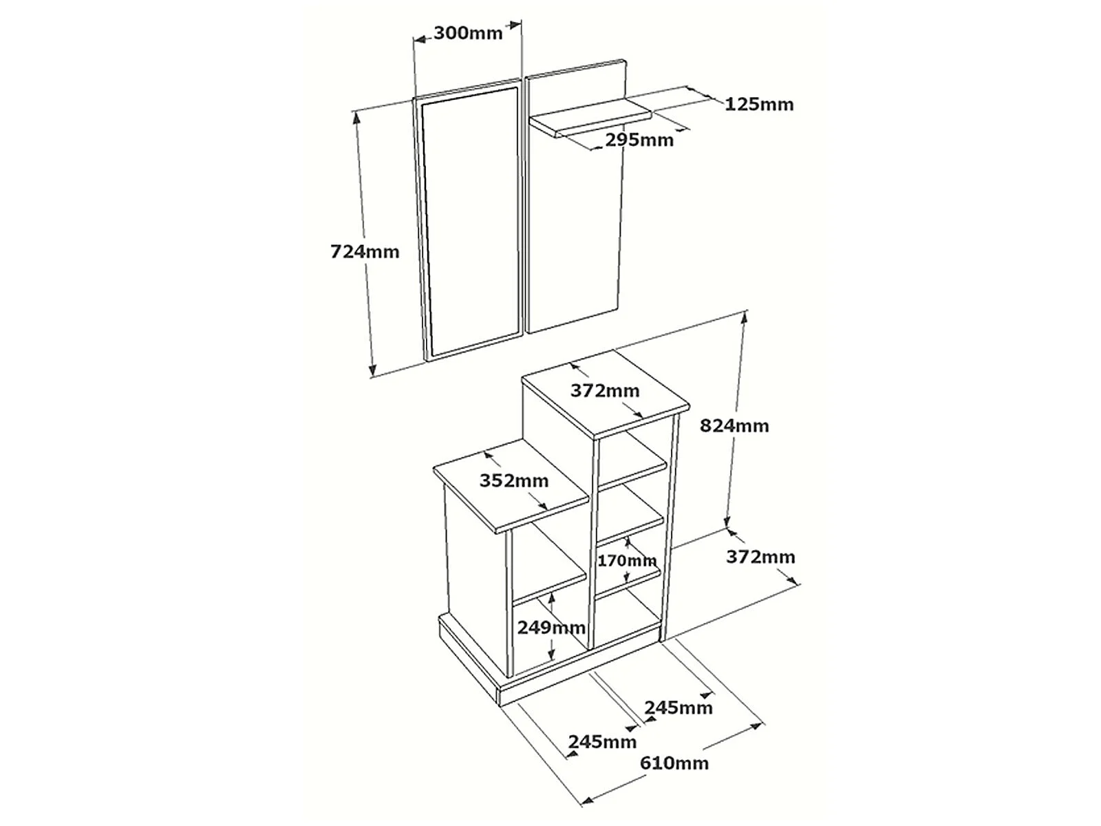 Vestiaire avec miroir et rangements - Anthracite et naturel - BAVALO