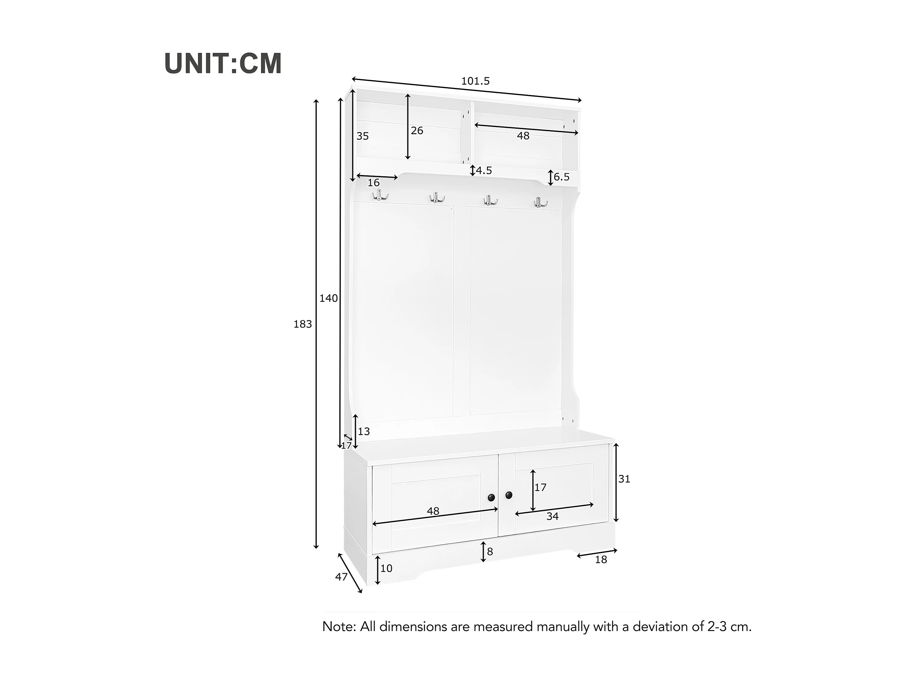 Vestiaire blanc avec 2 portes et 4 crochets, panneaux de particules, style minimaliste