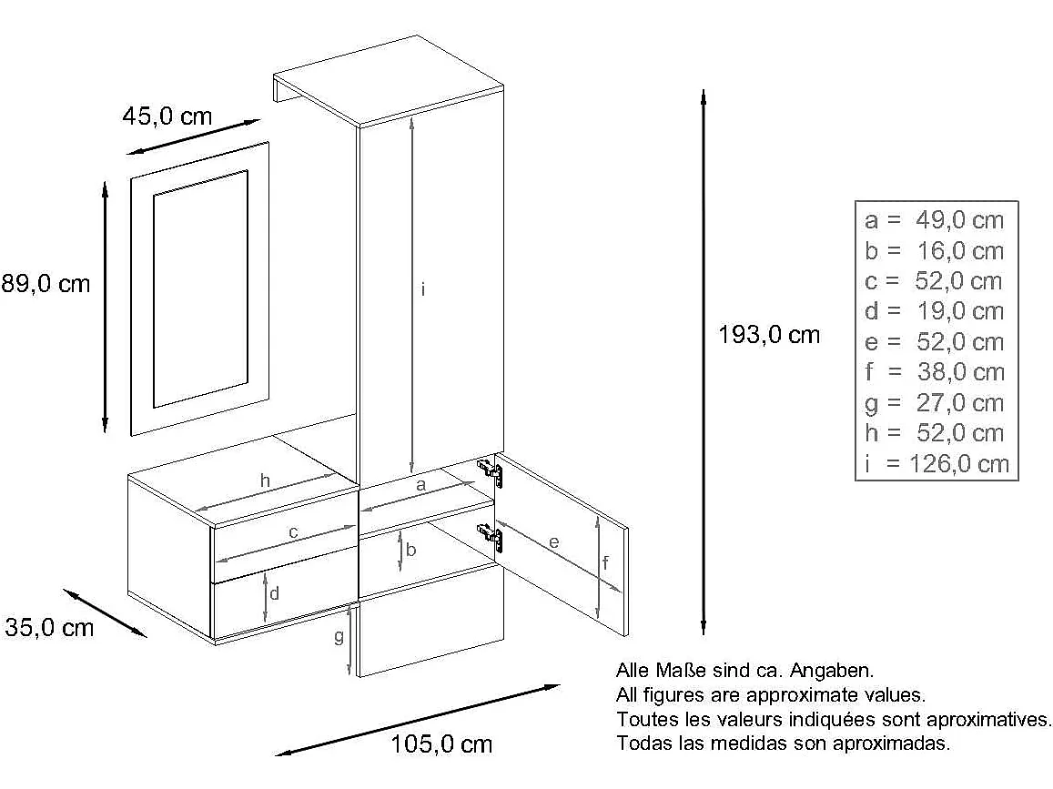 Vestiaire blanc mat et panneau crème laqué (LxHxP) : 105 x 193 x 35