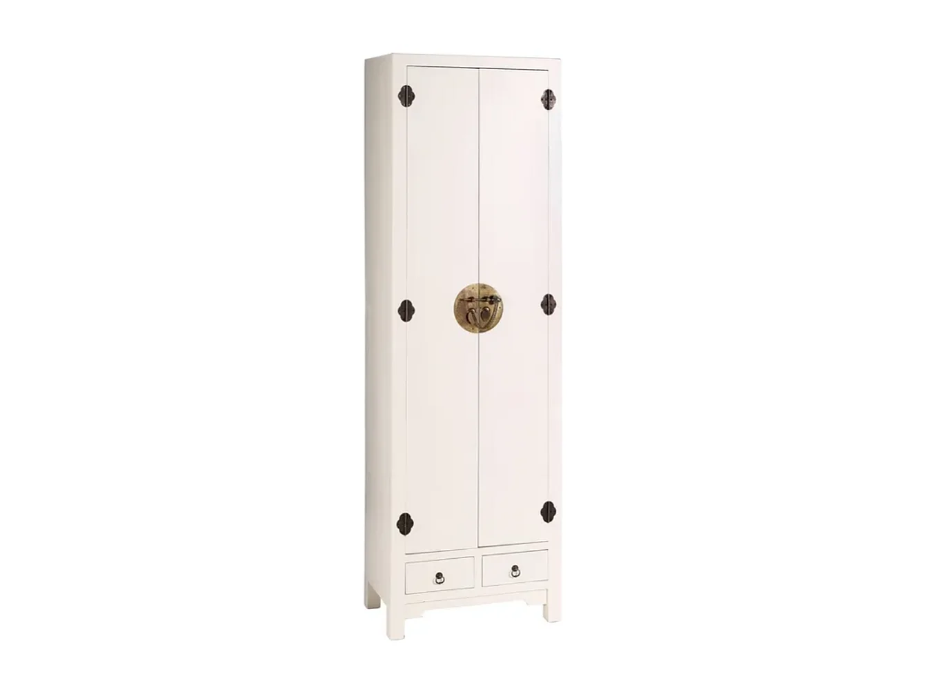Vestiaire d’entrée en bois blanc 2 portes et 2 tiroirs style asiatique chic AÉRIS