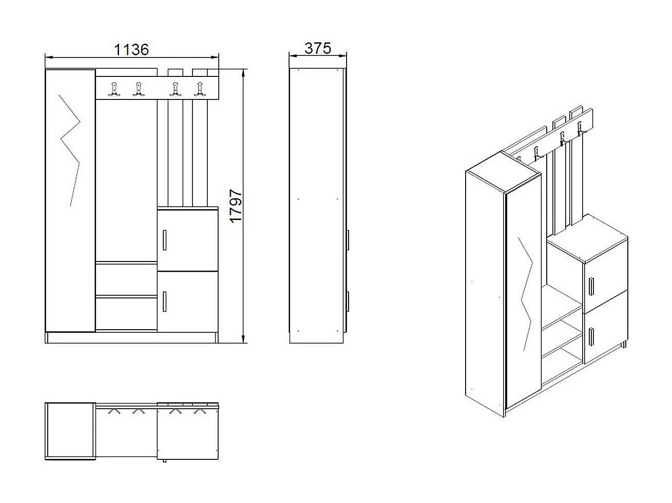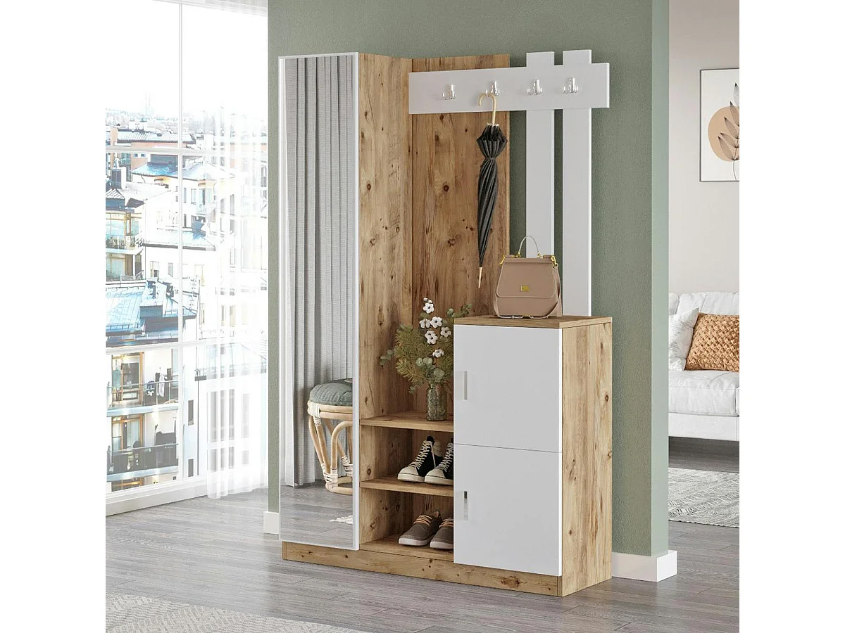Vestiaire d’entrée 2 portes blanc et décor bois MARFA