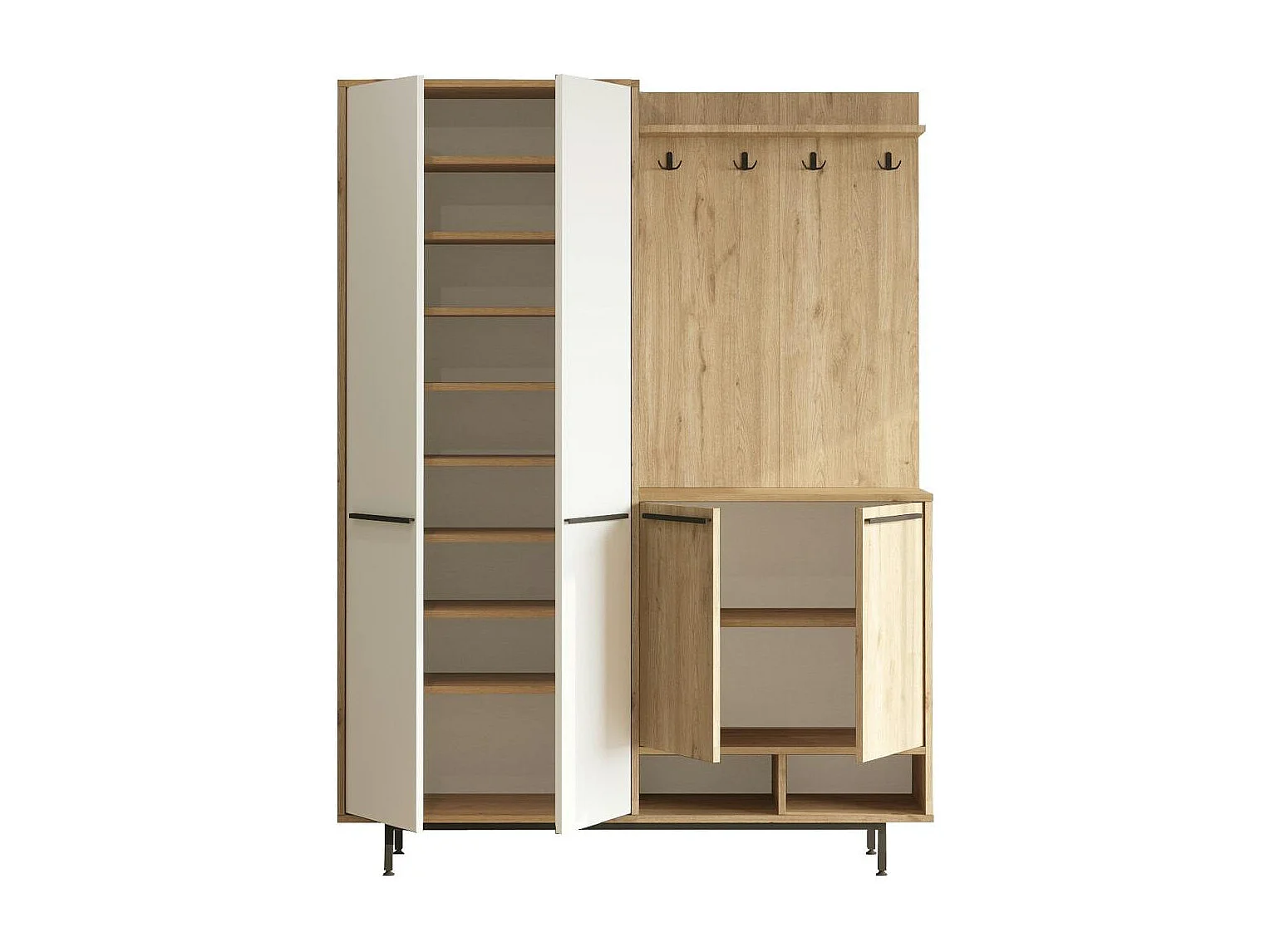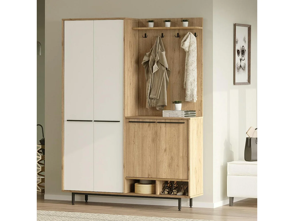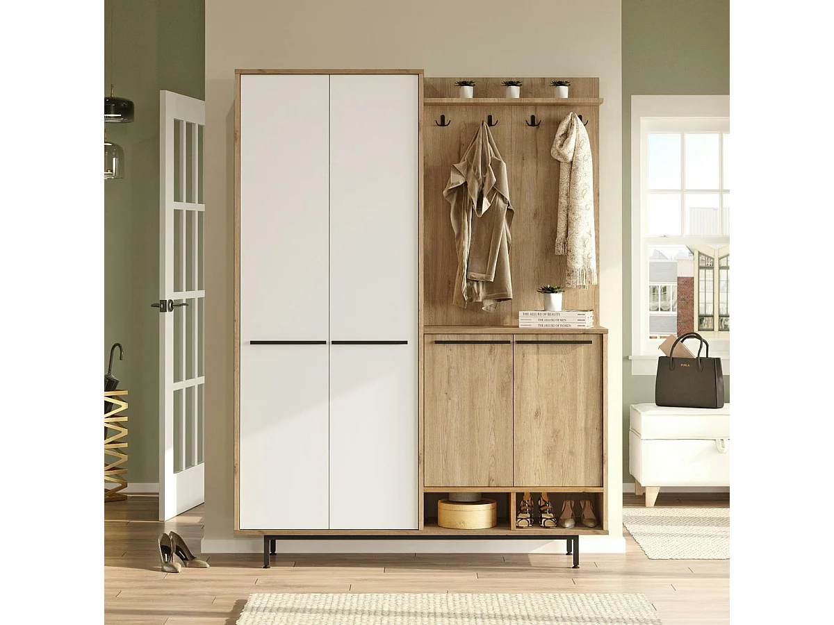 Vestiaire d'entrée 4 portes décor blanc et bois JENA