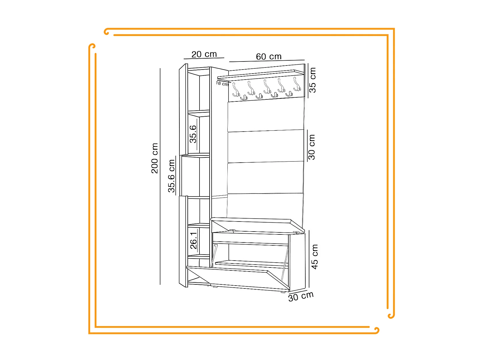 Vestiaire d'entrée avec assise, patère, panneau rembourré – Chêne doré et noir