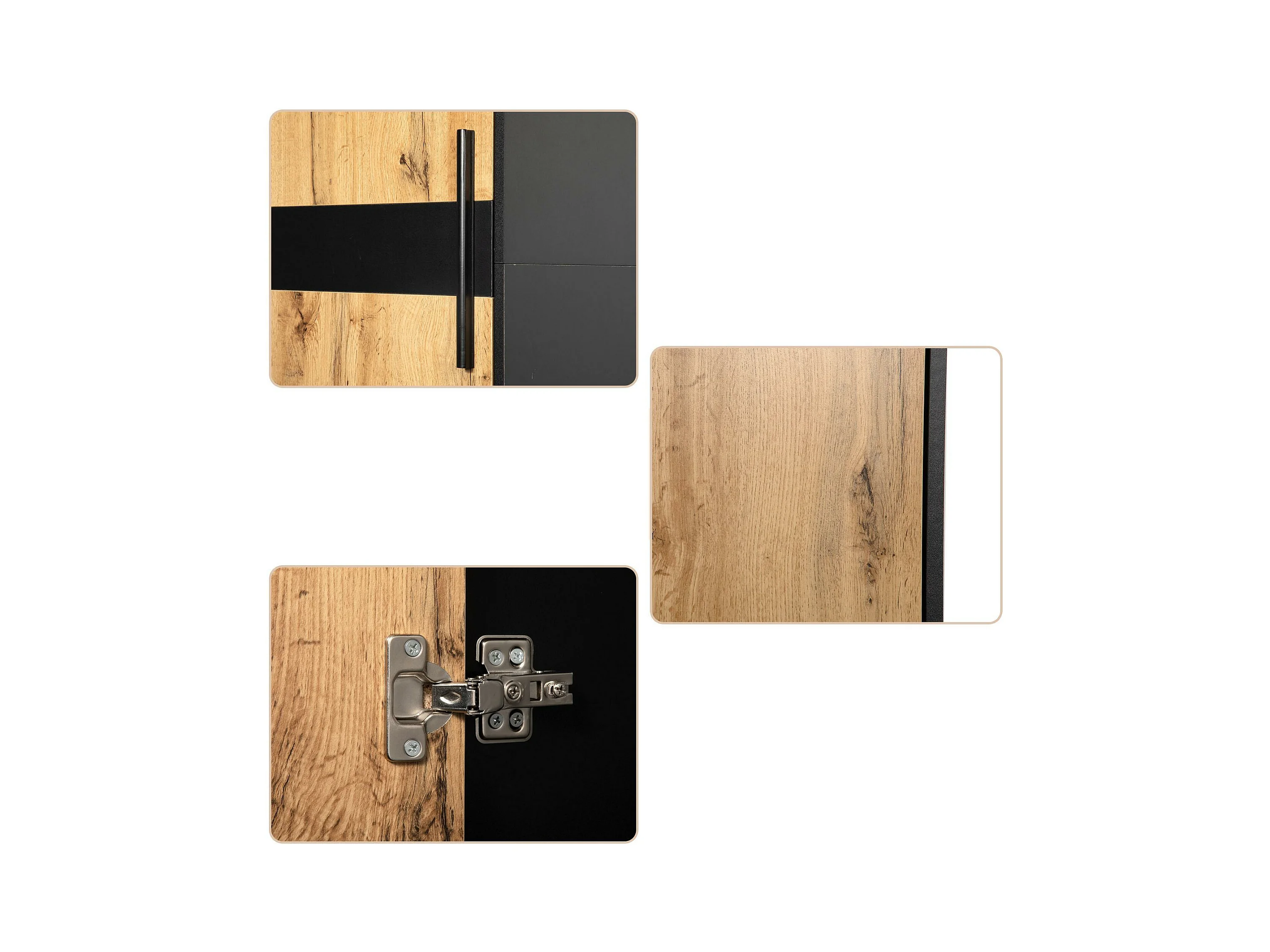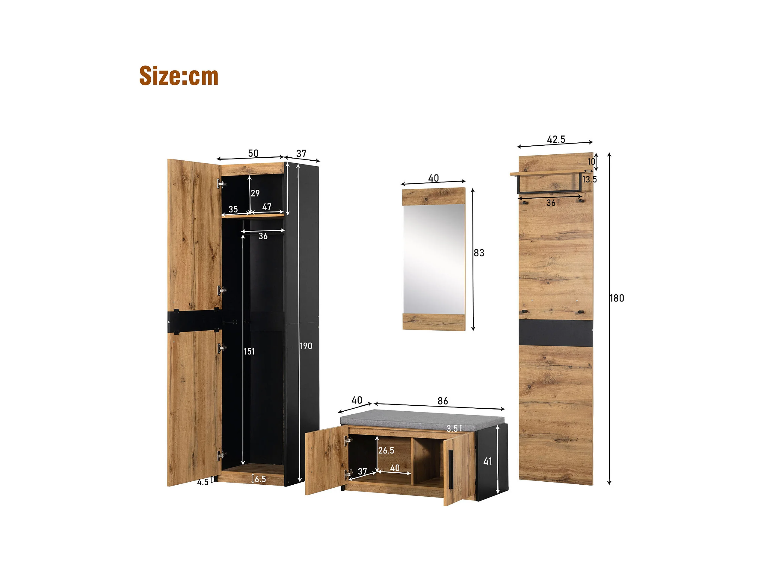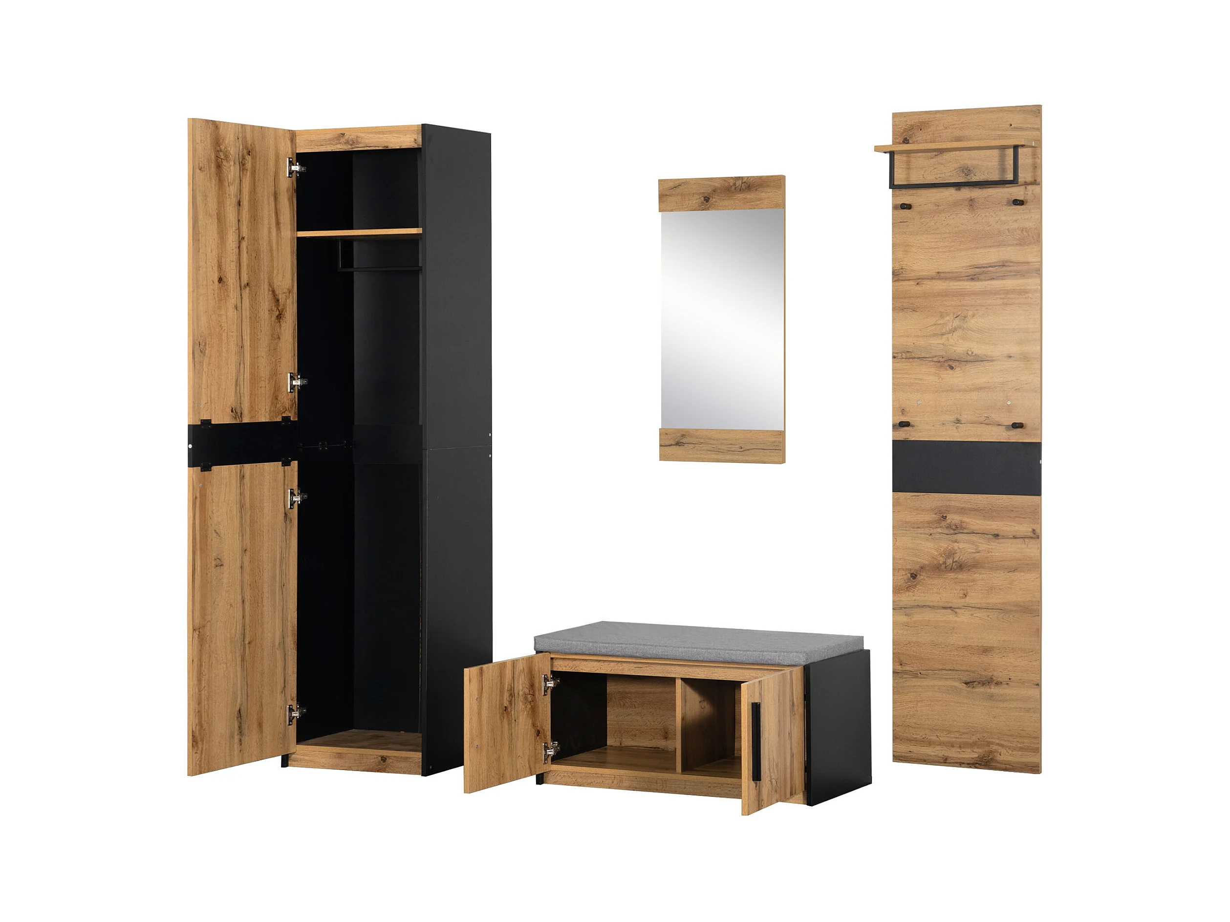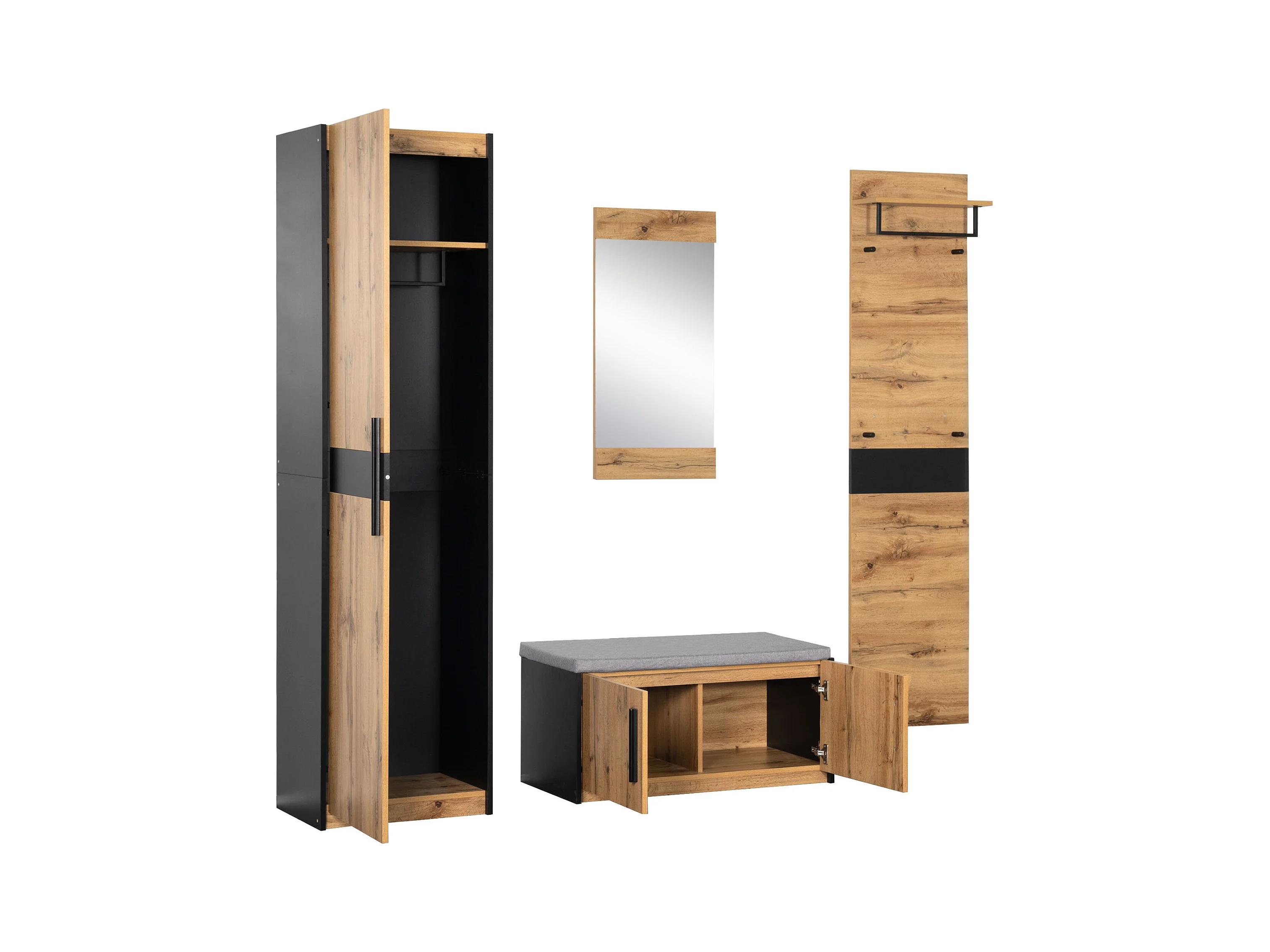 Vestiaire d'entrée avec miroir + armoire + banc à chaussures - style campagnard - naturel foncé