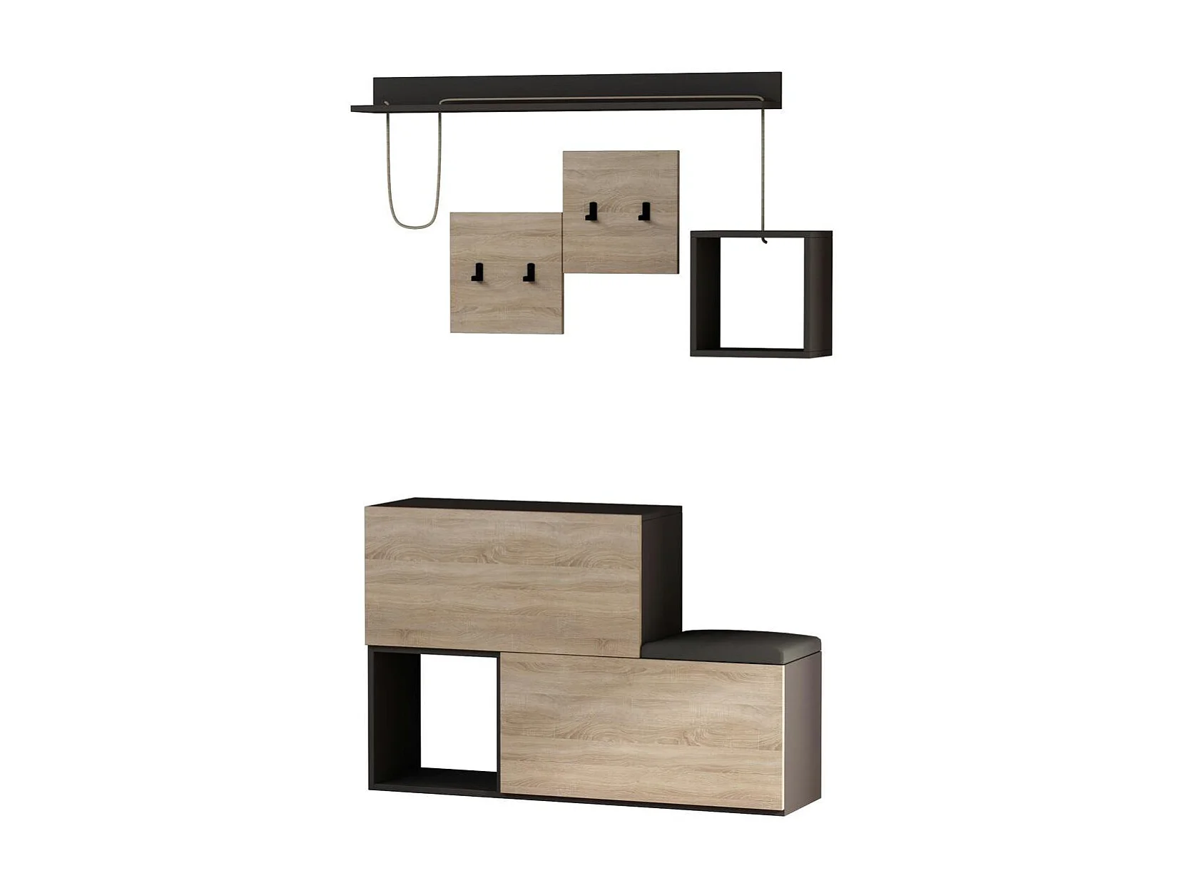 Vestiaire d’entrée design, banc et étagère graphiques MARFA