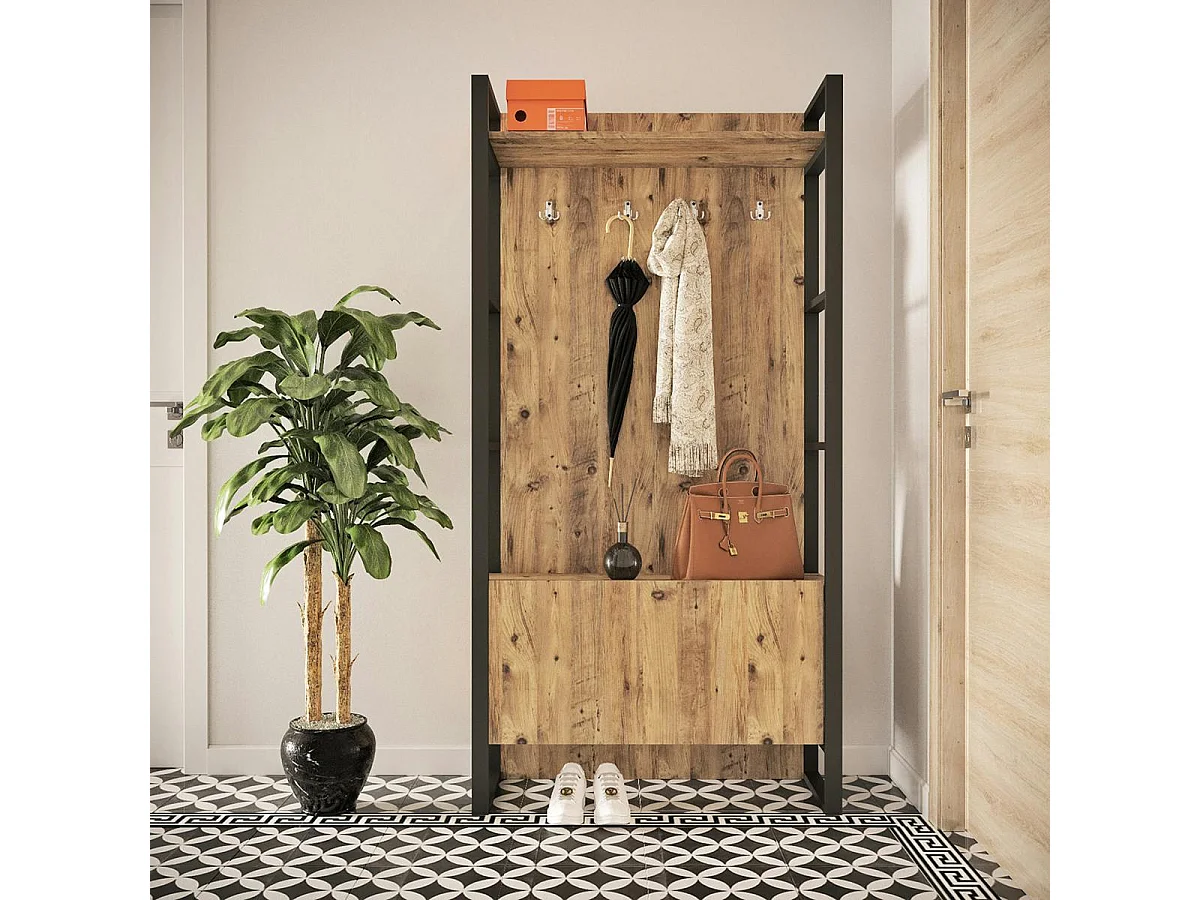 Vestiaire d'entrée rustique chic 1 rangement bas 1 étagère JENA