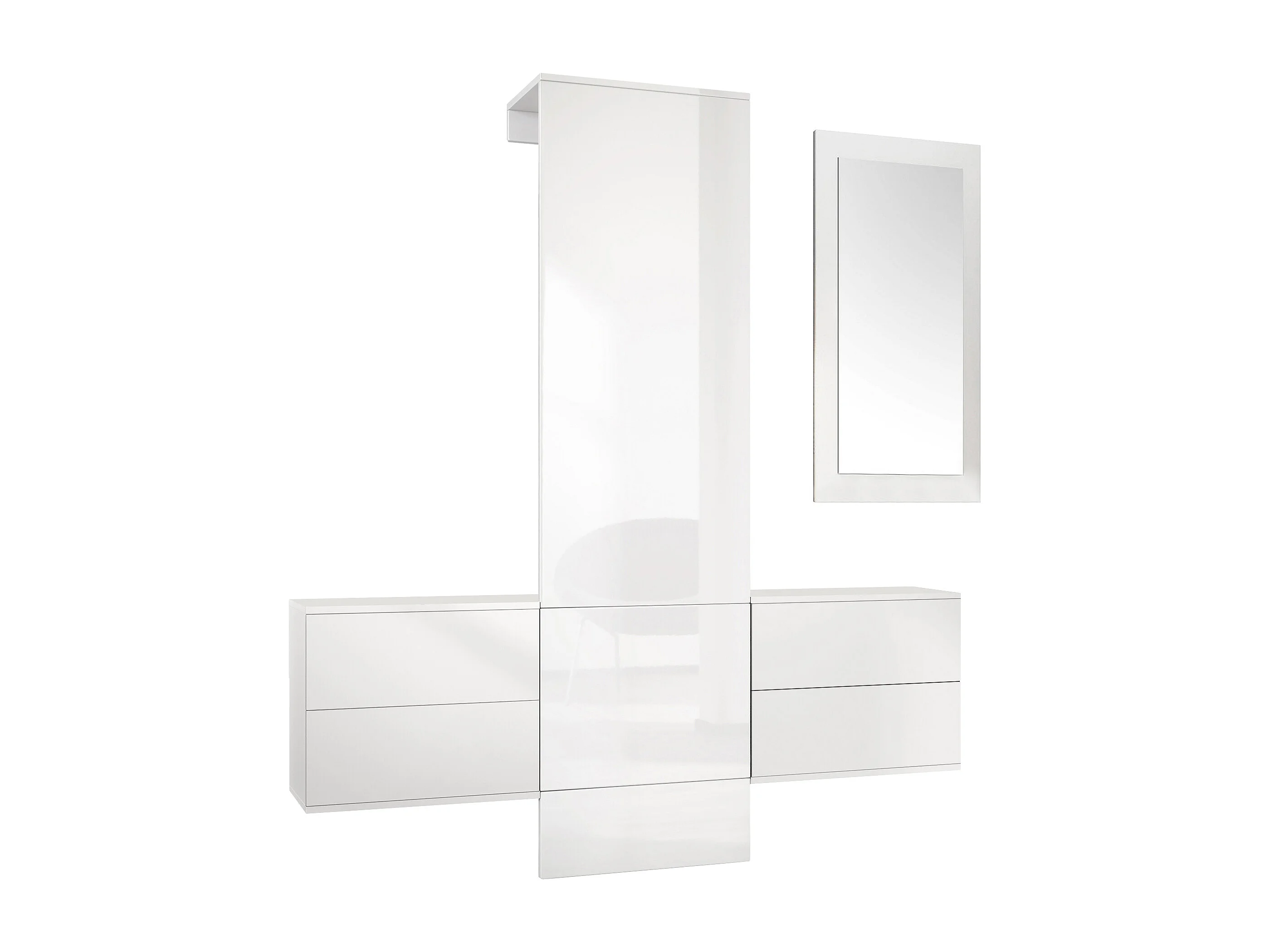 Vestiaire Garderobe Carlton Set 3, Corps en Blanc mat / Panneau portemanteau en blanc haute brillance