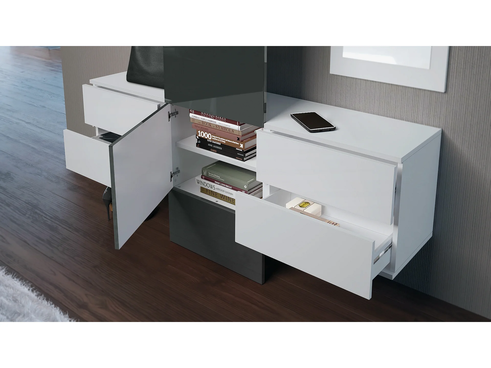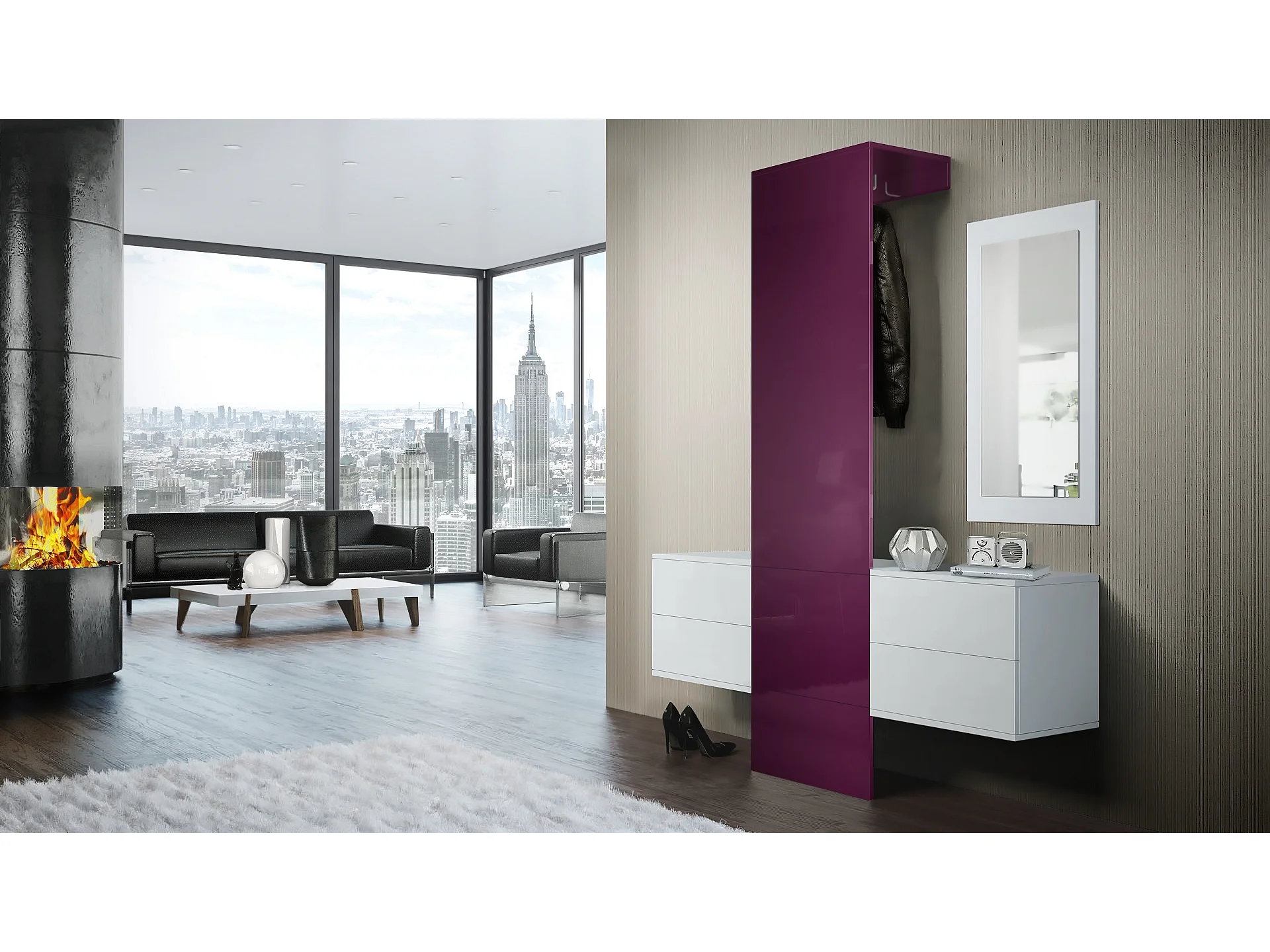 Vestiaire Garderobe Carlton Set 3, Corps en Blanc mat / Panneau portemanteau en mûre haute brillance
