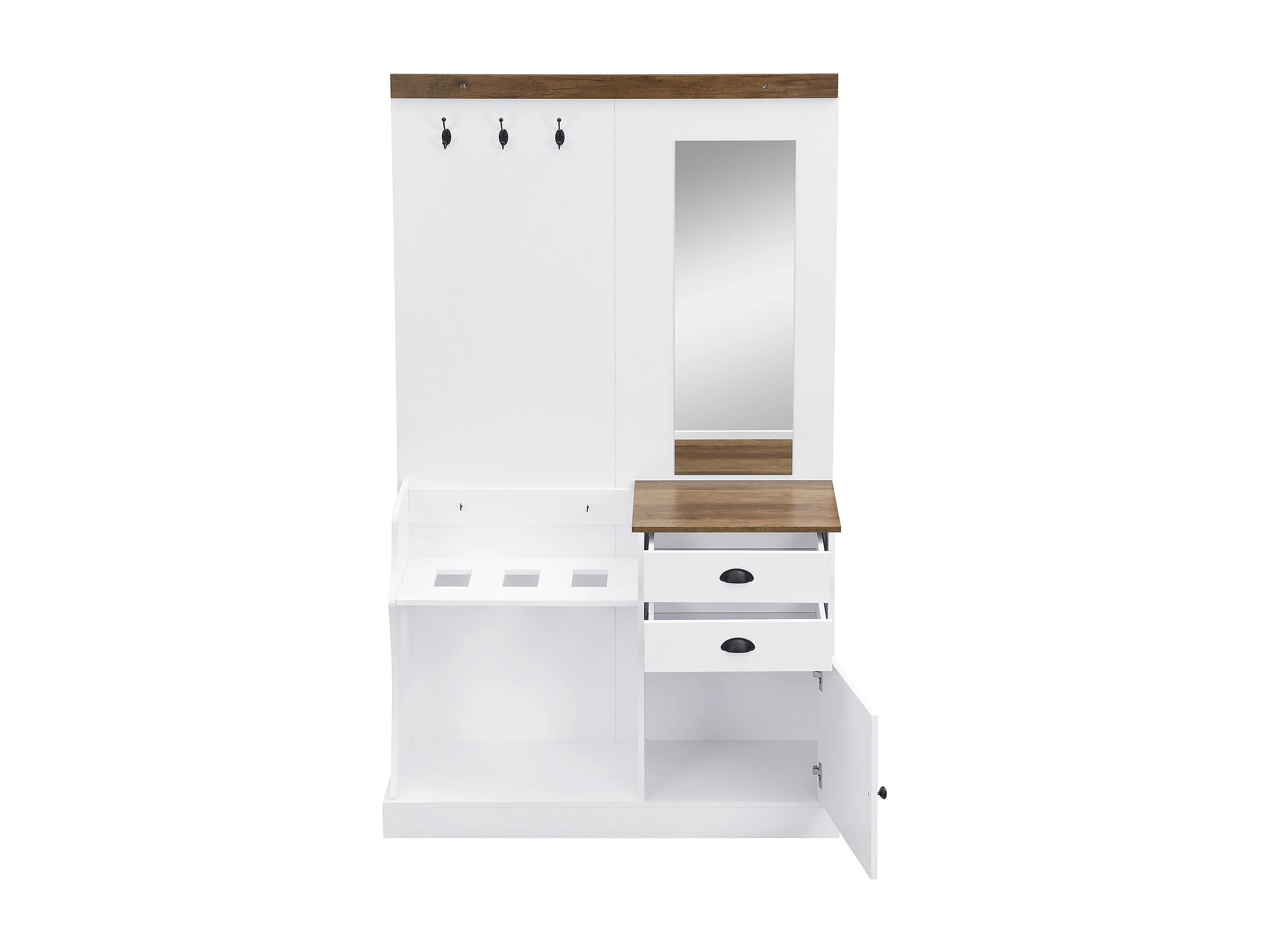 vestiaire moderne 110,5x38x191 avec miroir, patères, tiroirs et porte-parapluies,Panneaux de particules blanc