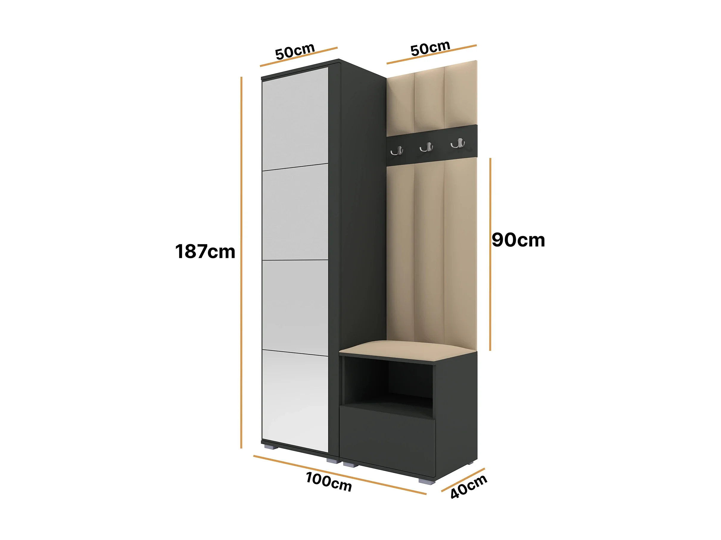 Vestiaire Nela I LUX avec miroir - 100 cm - Graphite - Trinity 04 - Beige