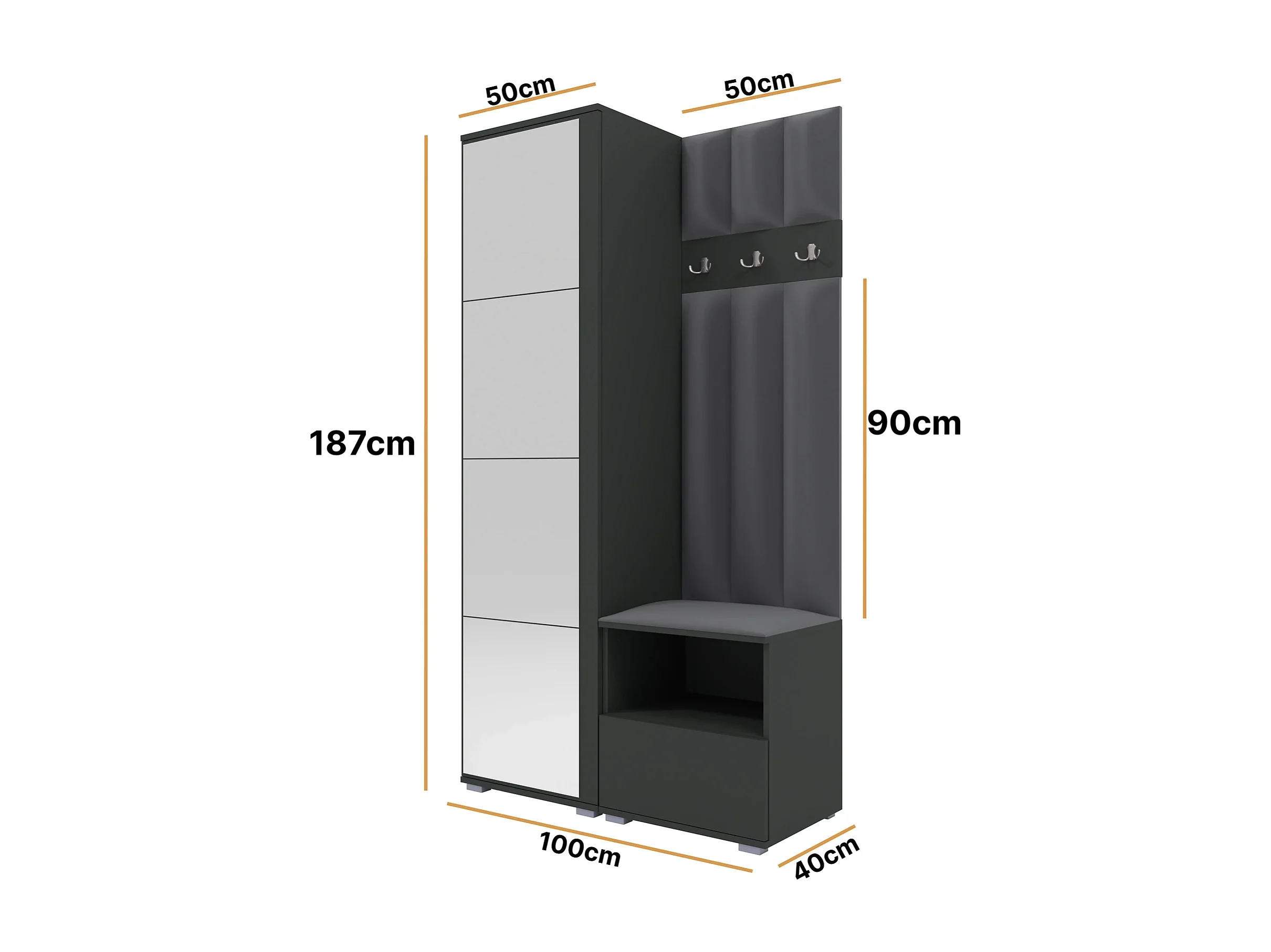 Vestiaire Nela I LUX avec miroir - 100 cm - Graphite - Trinity 15 - Gris Foncé