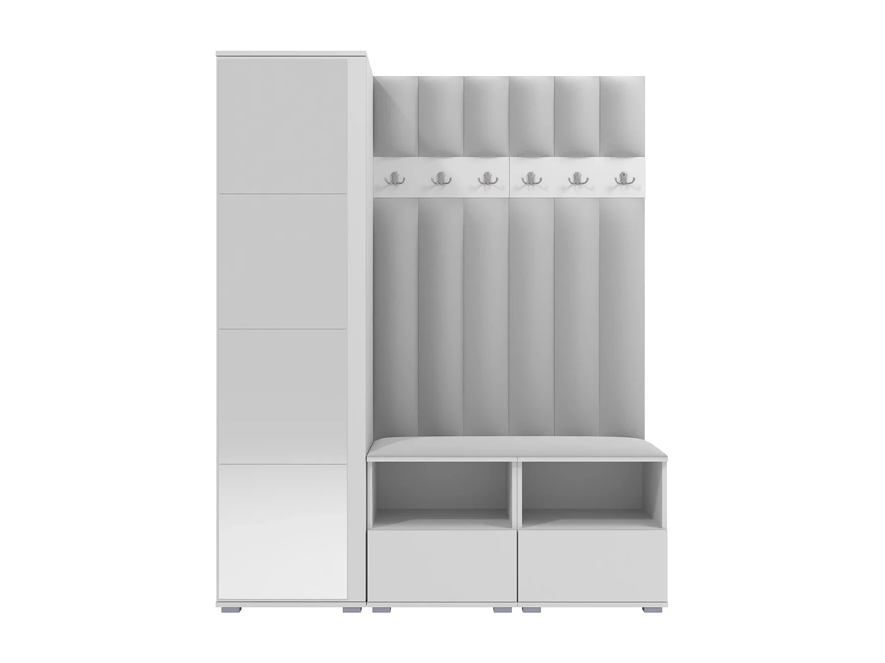 Vestiaire Nela II LUX avec miroir - 150 cm - Blanc Mat - Trinity 32 - Gris Clair