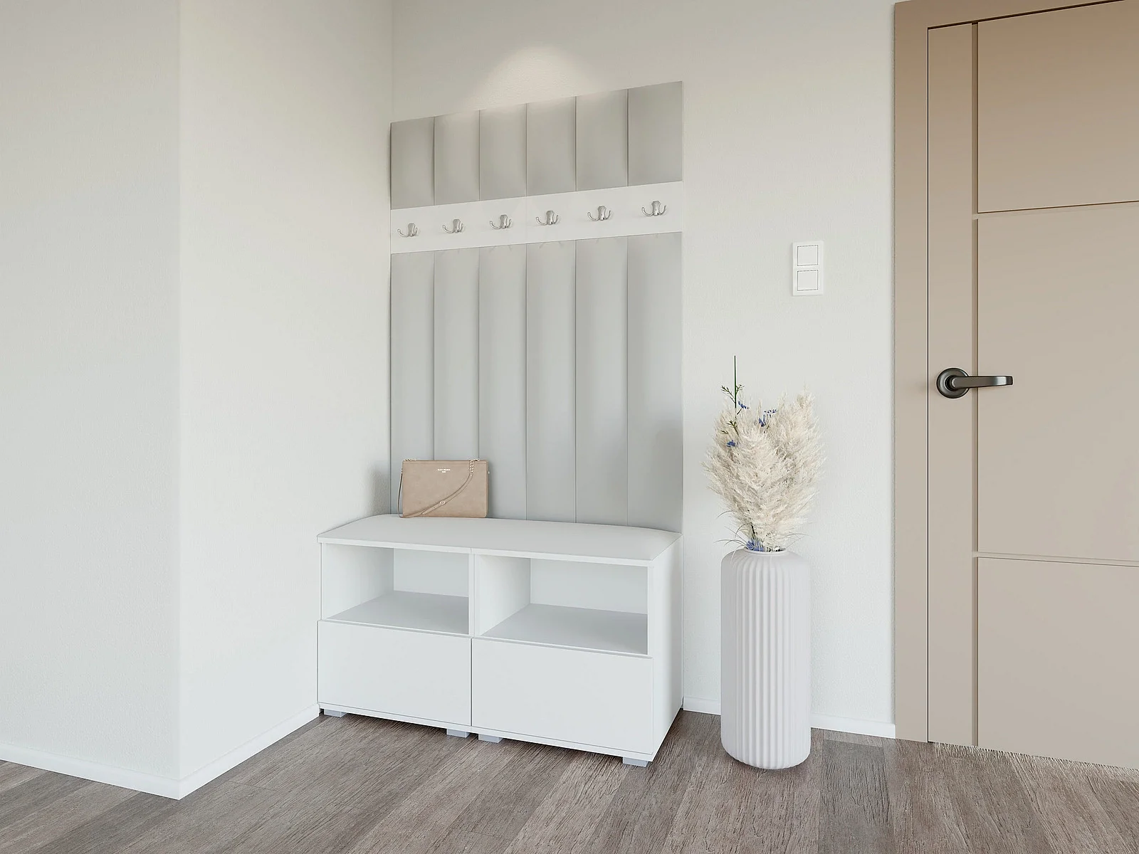 Vestiaire Nela III LUX - 100 cm - Blanc Mat - Trinity 32 - Gris Clair