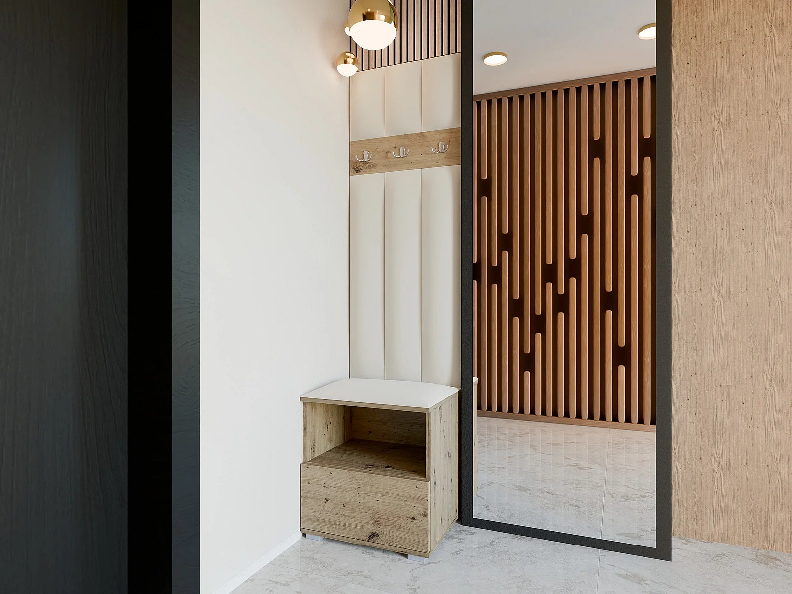 Vestiaire Nela IV LUX - 50 cm - Chêne Artisan - Trinity 01 - Crème