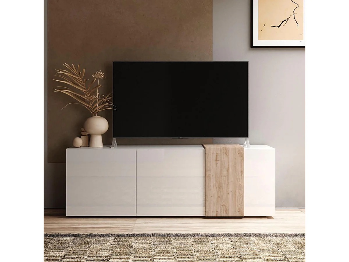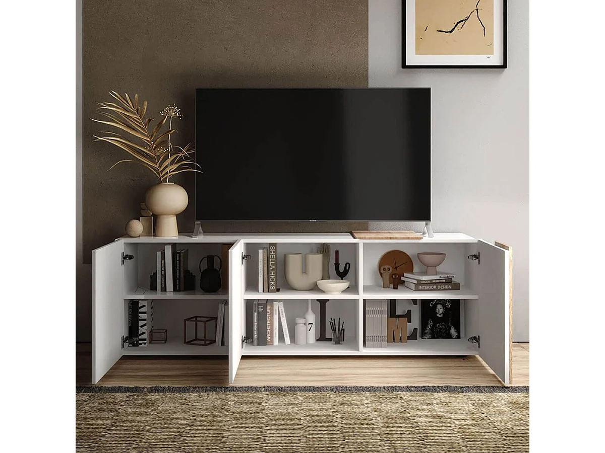 VESUVIO BLANC - Meuble TV 3 Portes Laqué Blanc et Aspect Bois Finition Cadiz
