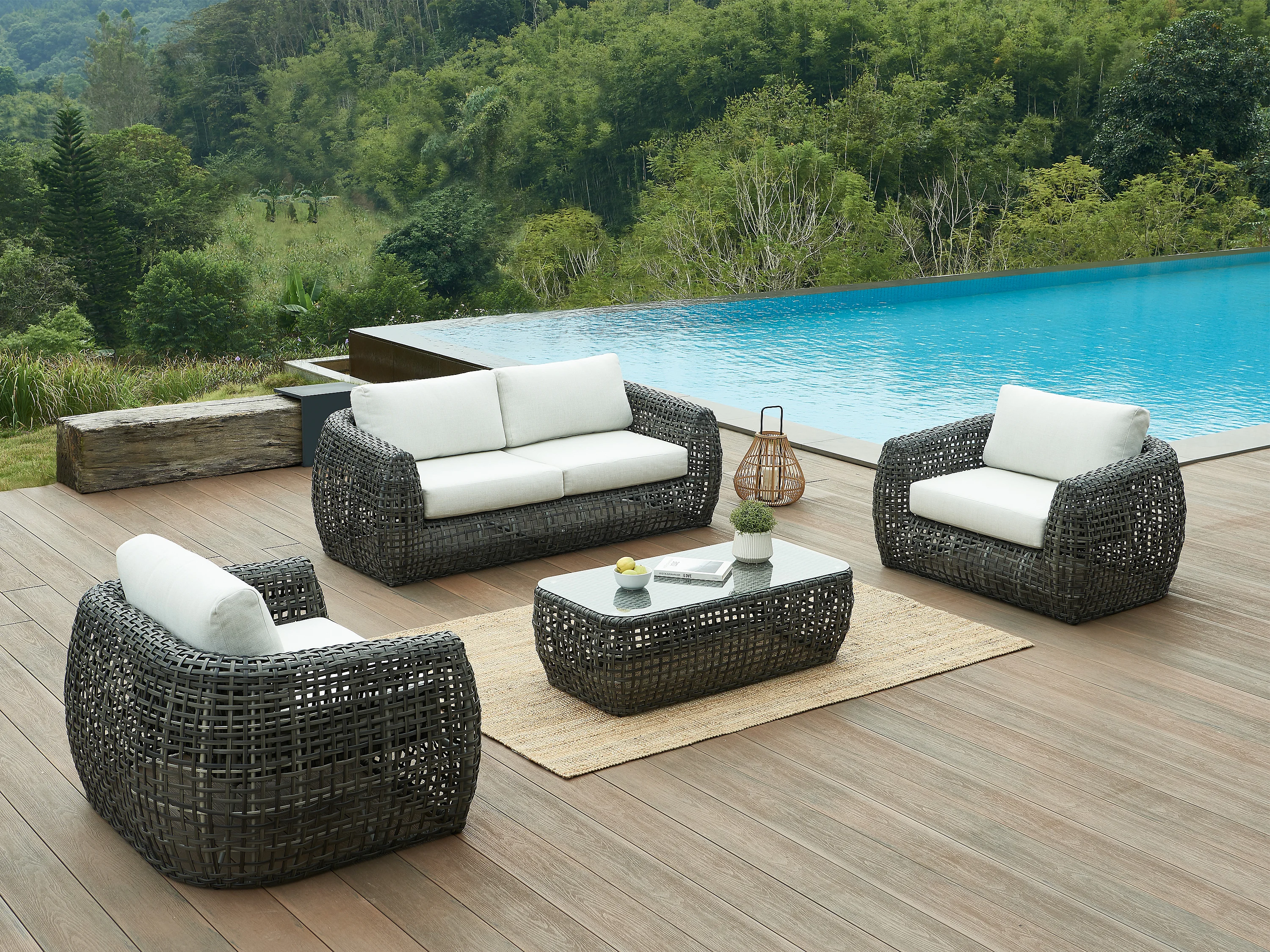 • Coussins déperlants, déhoussables et lavables à la main