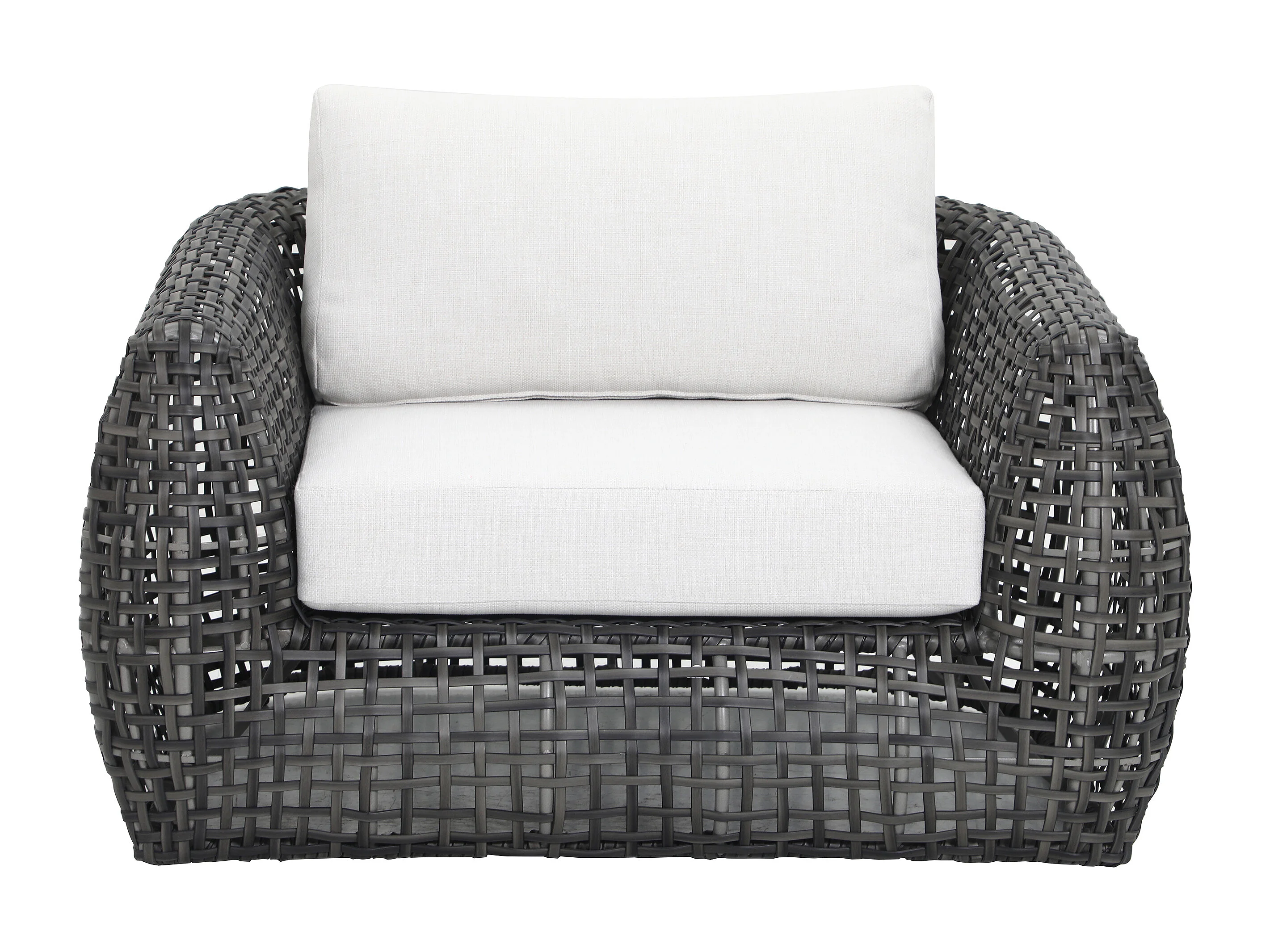 Lot de 2 fauteuils de jardin en résine tressée - Anthracite avec coussins blancs - VEYRO de MYLIA