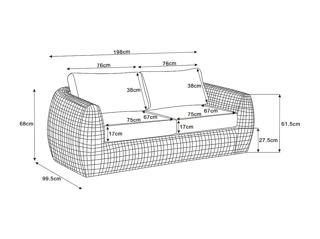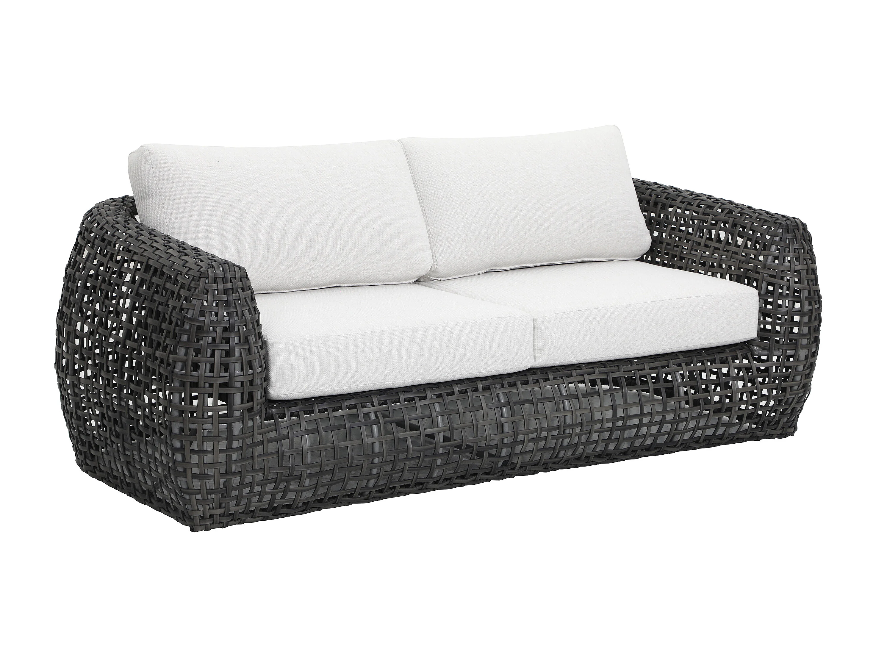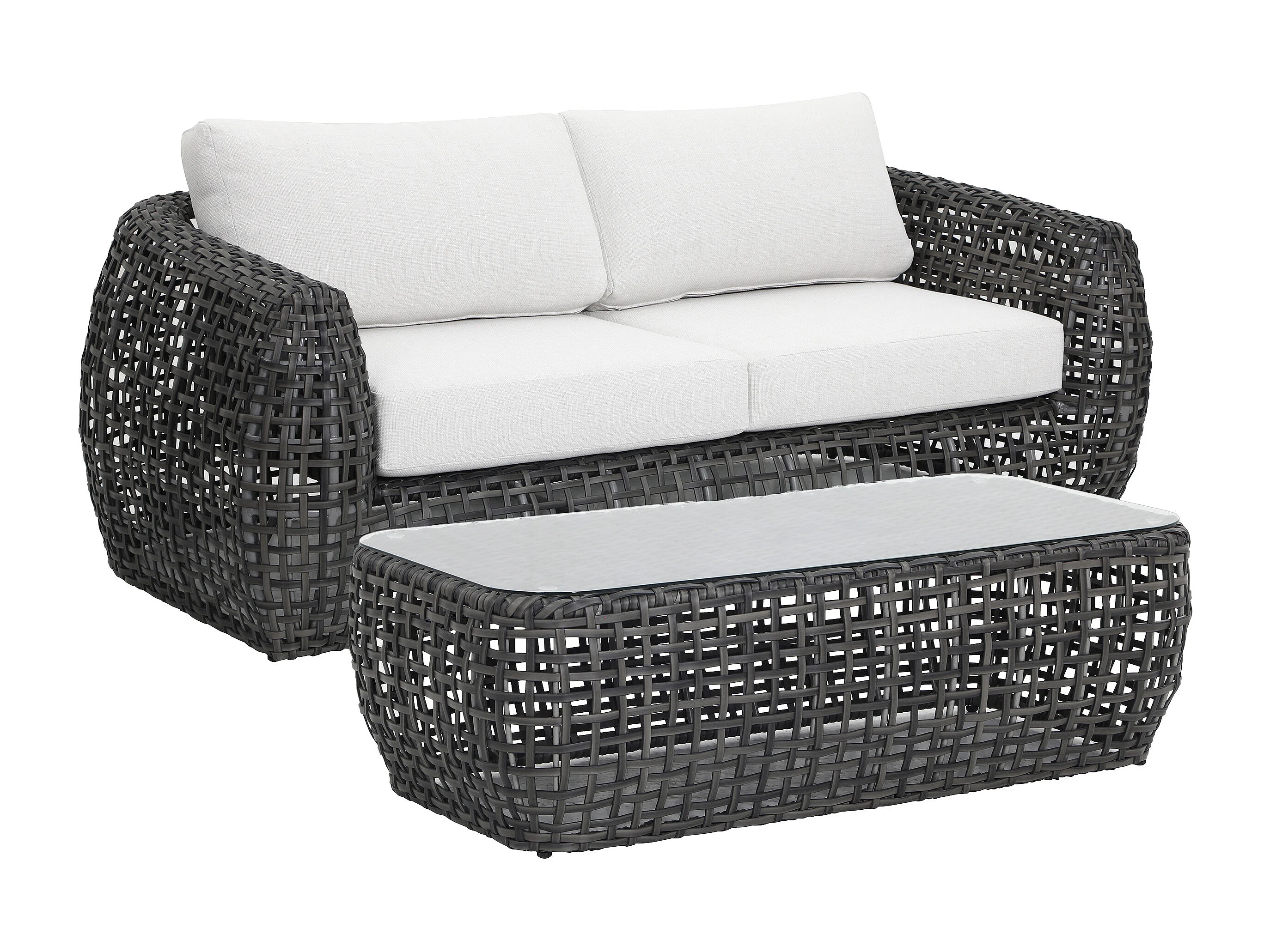 Salon de jardin en résine tressée : un canapé de jardin 2 places et 1 table basse - Anthracite avec coussins blancs - VEYRO de MYLIA