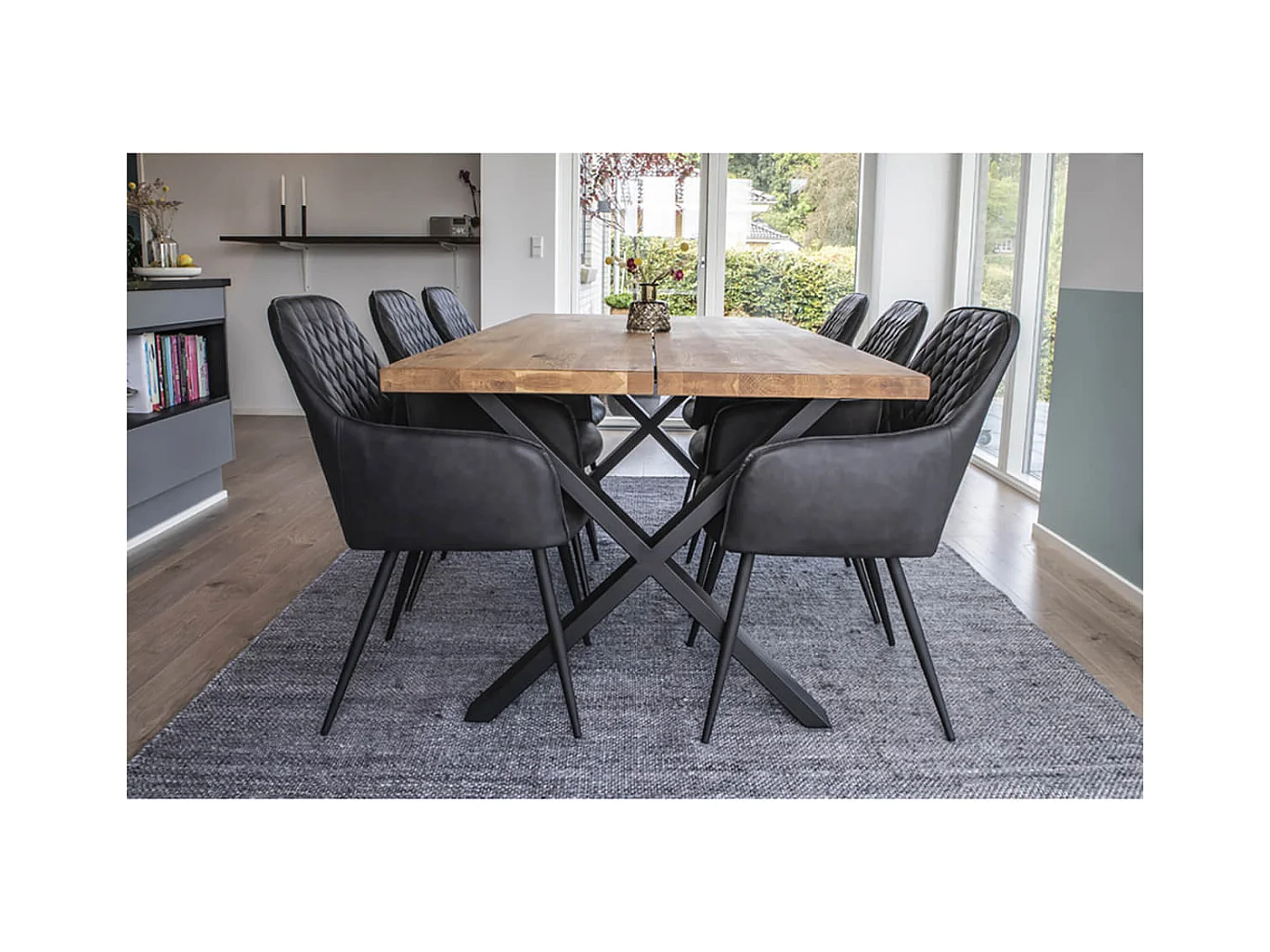 VIBY - Lot de 2 Fauteuils Simili Noir et Piétement Acier Noir