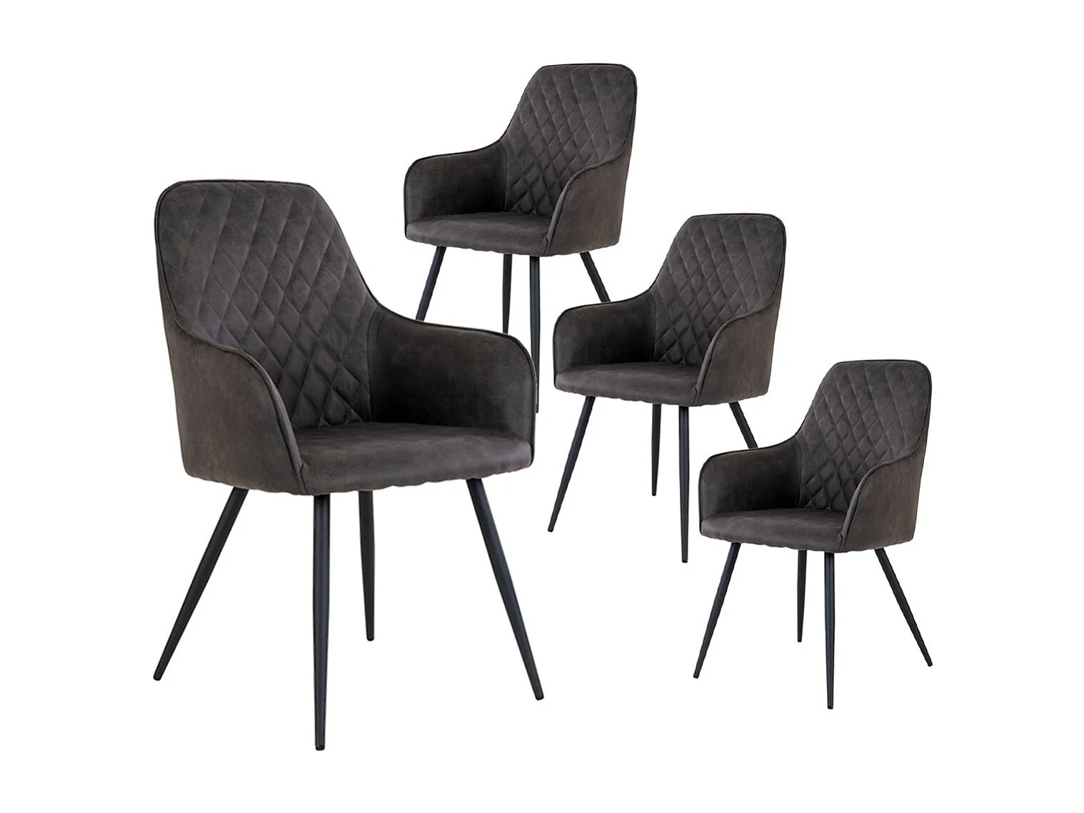 VIBY - Lot de 4 Fauteuils Microfibre Gris et Piétement Acier Noir