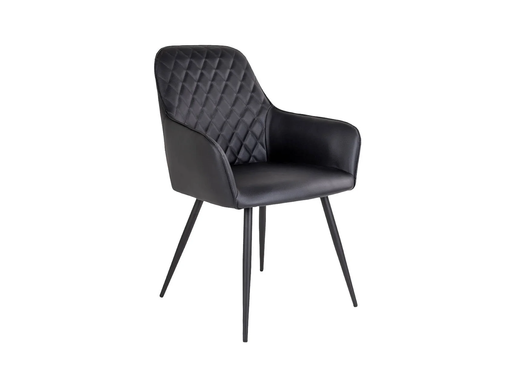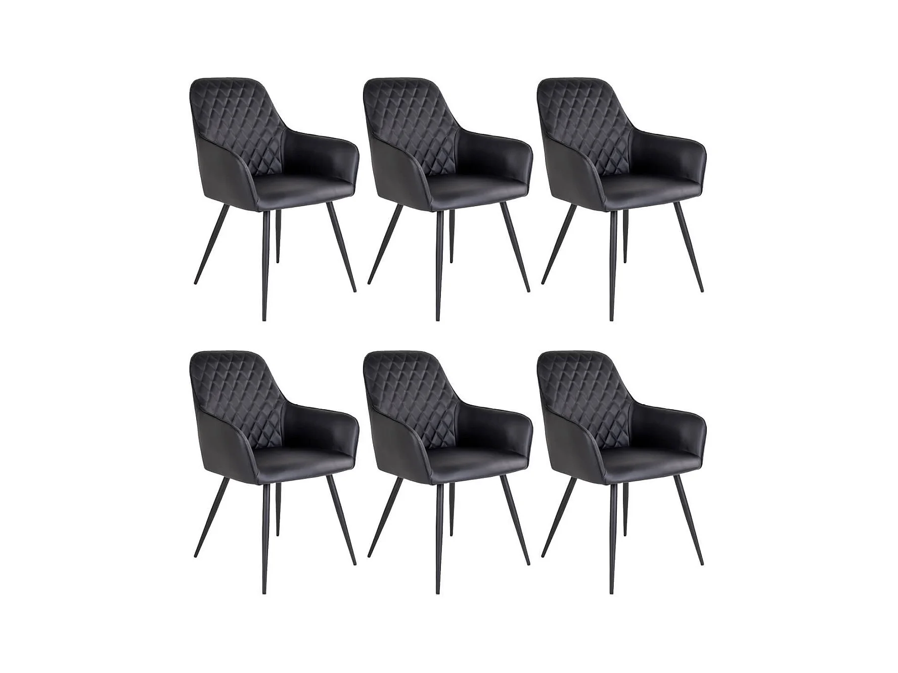 VIBY - Lot de 6 Fauteuils Simili Noir et Piétement Acier Noir