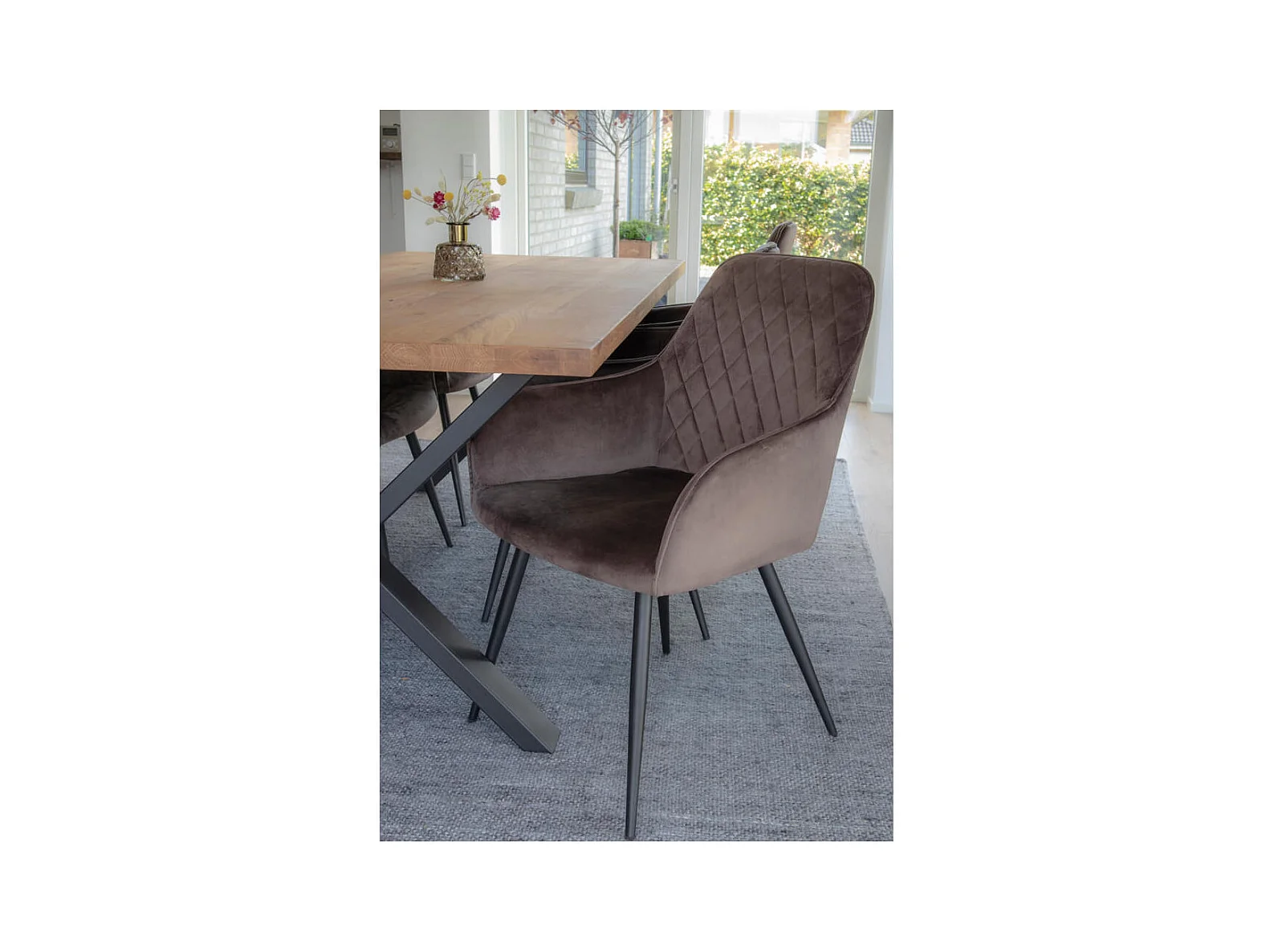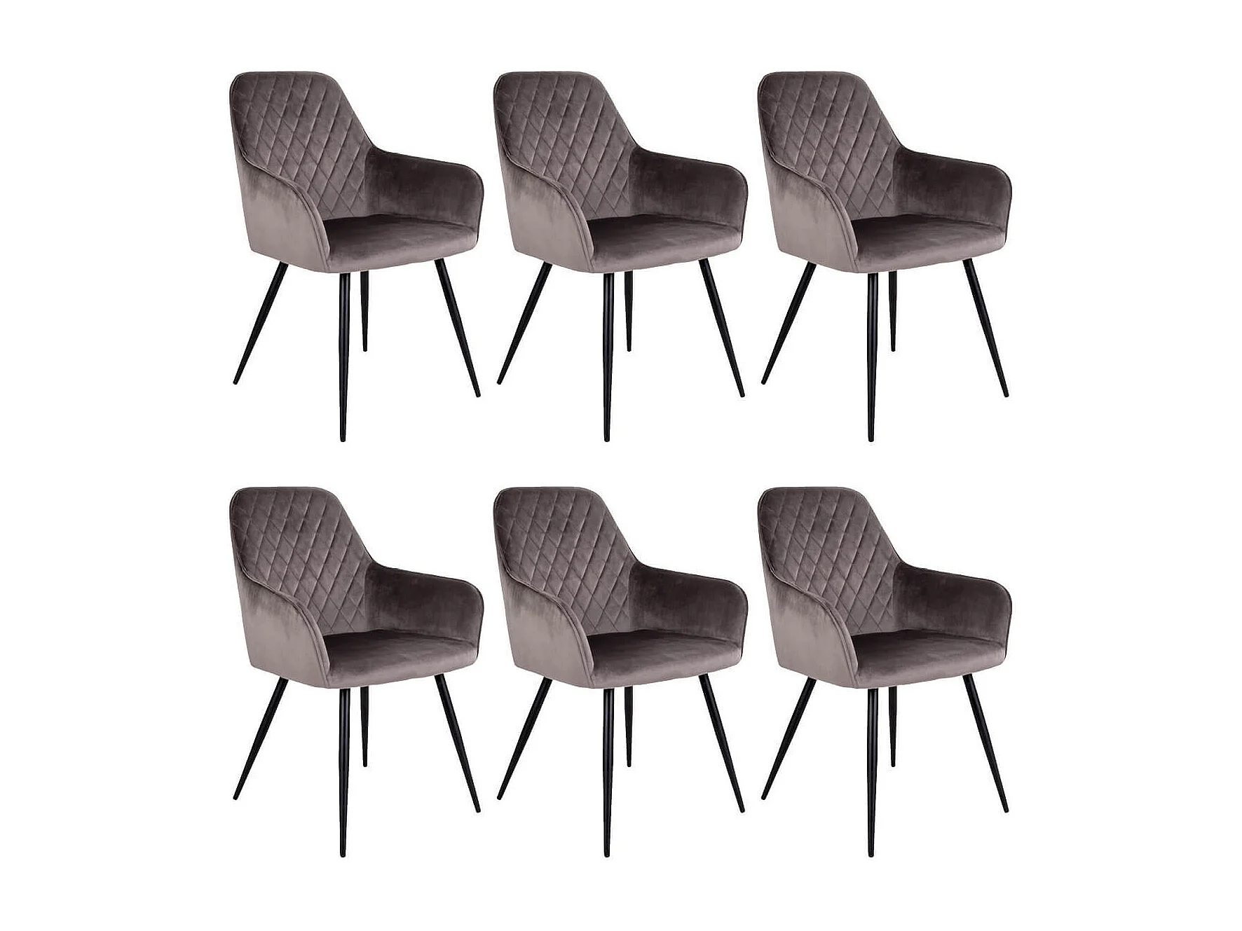 VIBY - Lot de 6 Fauteuils Velours Taupe et Piétement Acier Noir