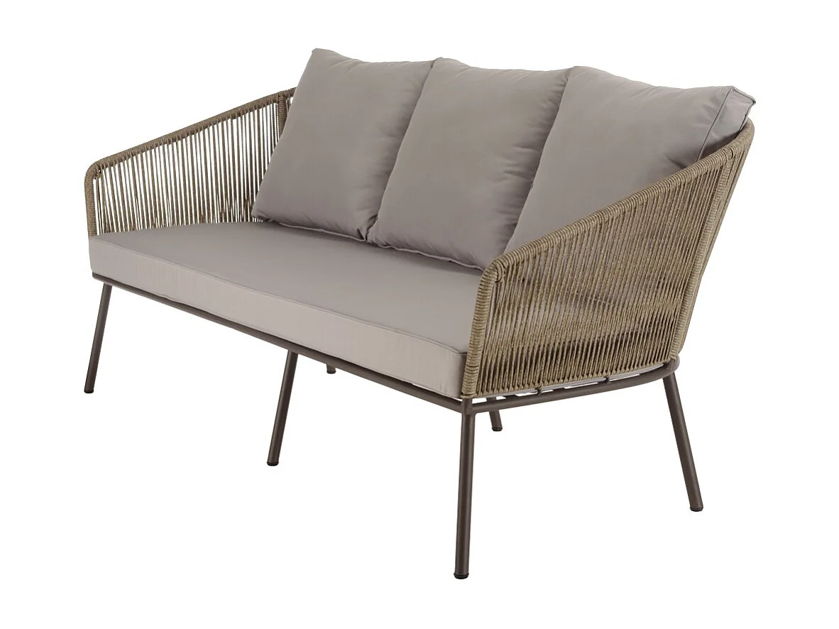 VICK - Salon de jardin 5 places acier, cordage synth. taupe, acacia huilé