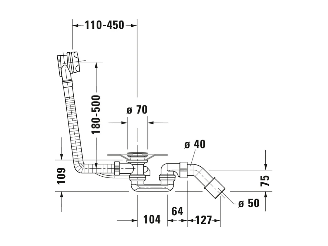 Vidage baignoire DURAVIT D-Code Chromé 35x8x40 cm