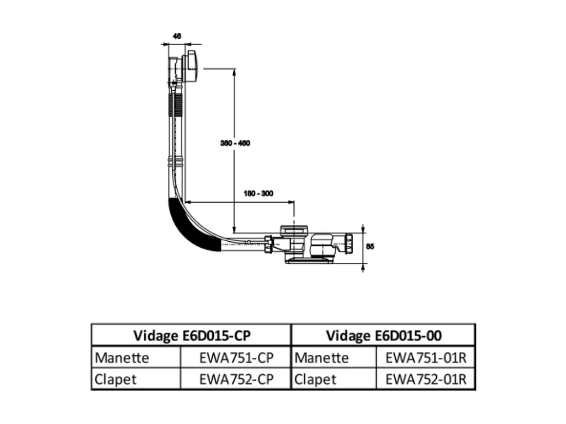 Nicoll Vidage baignoire à câble TBR07