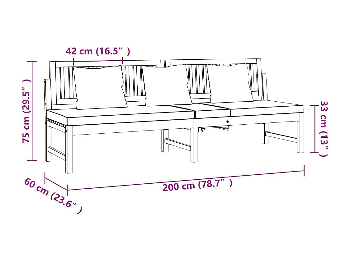 vidaxL Lit de jour avec coussin gris 200x60x75 Bois d'acacia solide