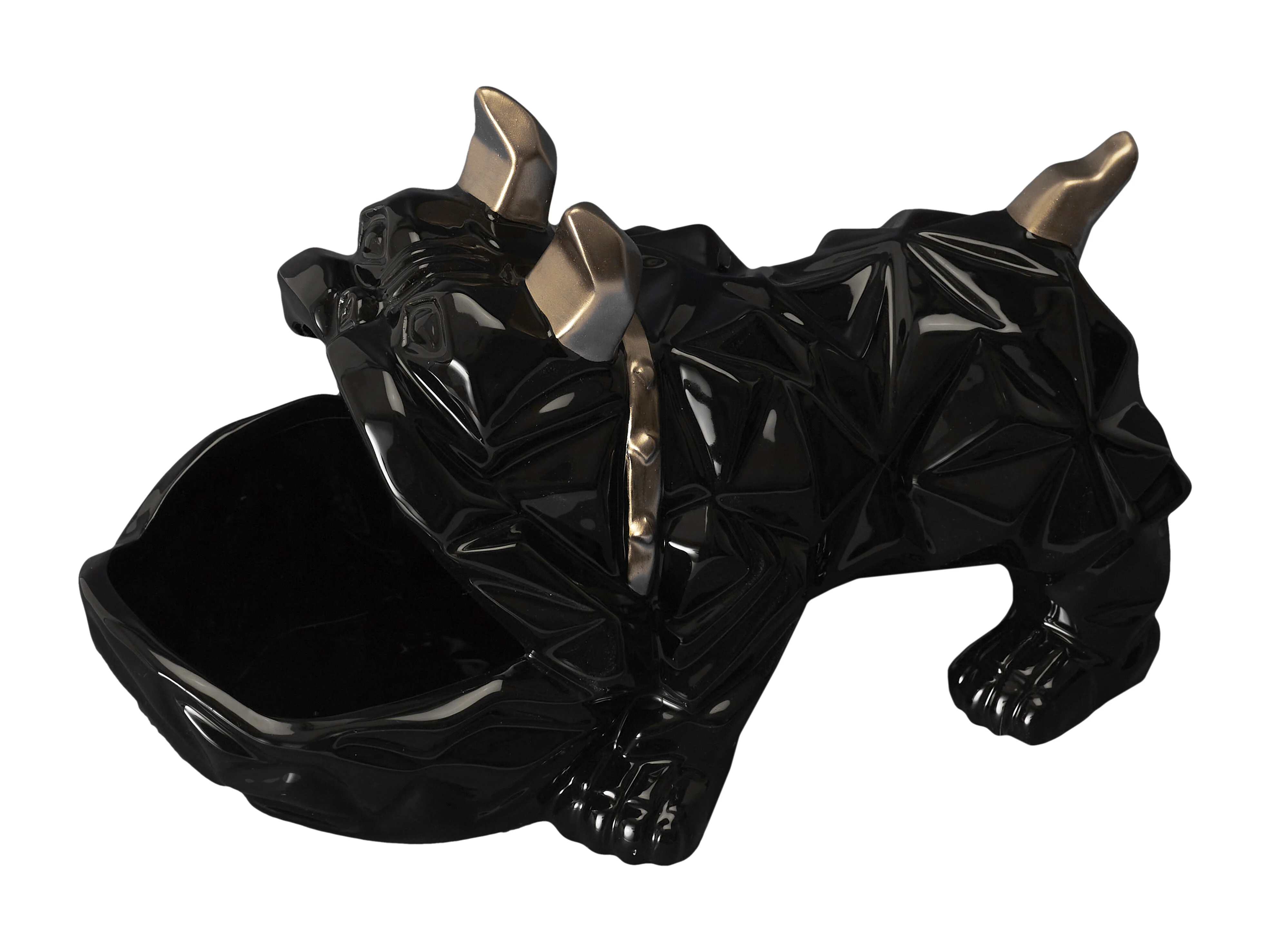 Sculpture Deco Bulldog Noir Vide Poche 23cm Noir, Or